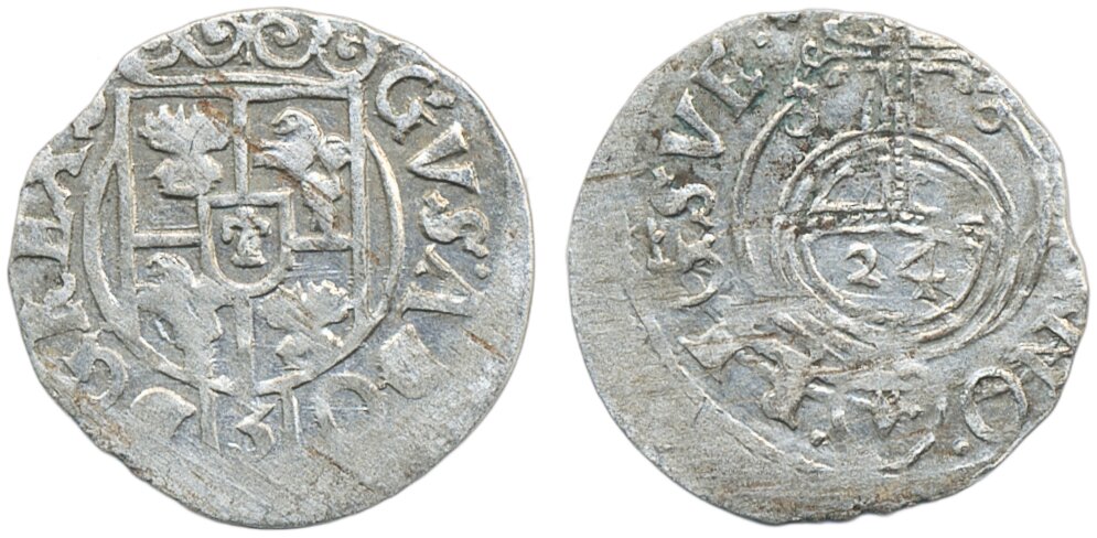 Coins, Swedish possessions, Elbing. Gustav II Adolf, SB 5, 1/24 taler 1633. 0.93 g. Struck off-centre. 1+.