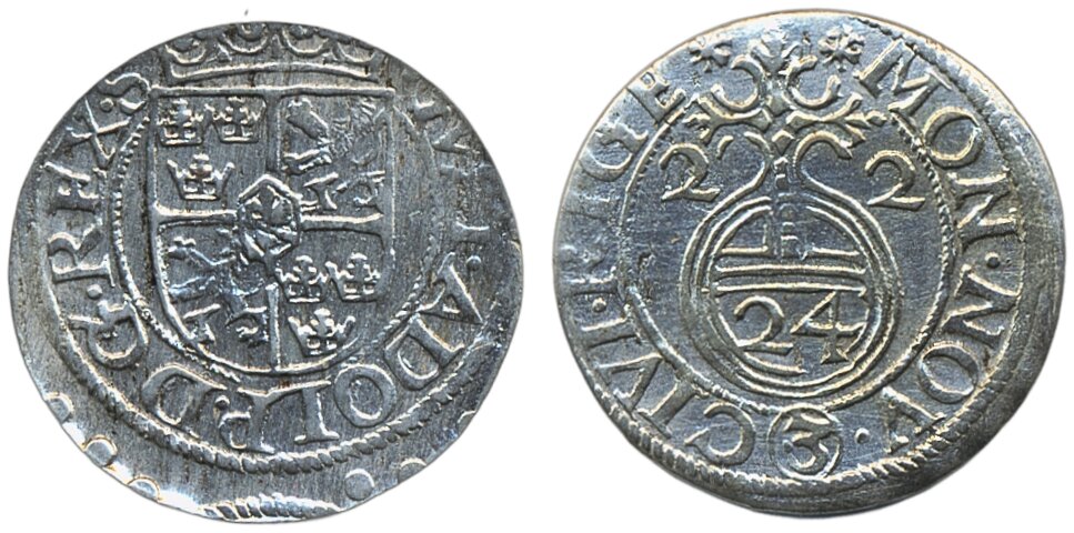 Coins, Swedish possessions, Riga. Gustav II Adolf, SB 10, 1/24 thaler (dreipölcher) 1622. 1.48 g. 01.