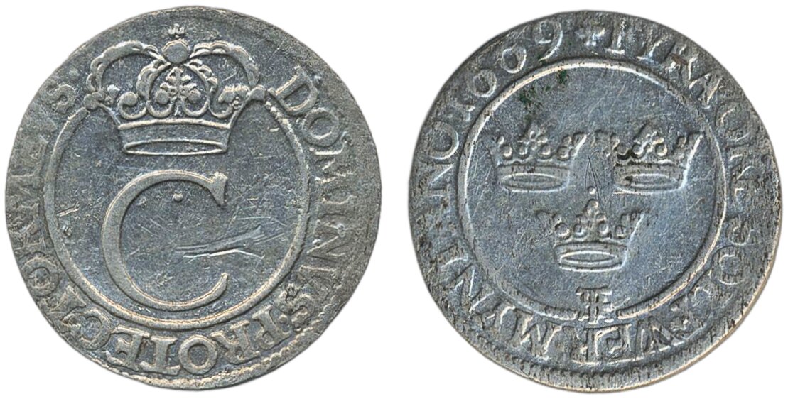 Coins, Sweden. Karl XI, SM 198b, 4 öre 1669. 3.42 g. Stockholm. Scratch. SMB 314. Göhle 83. 1+/01.