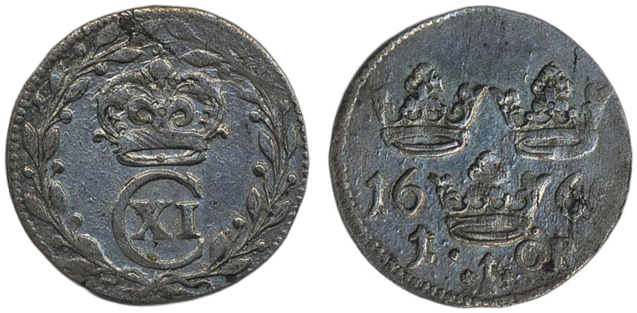Coins, Sweden. Karl XI, SM 225, 1 öre 1665. 1.25 g. Stockholm. 1+/01.