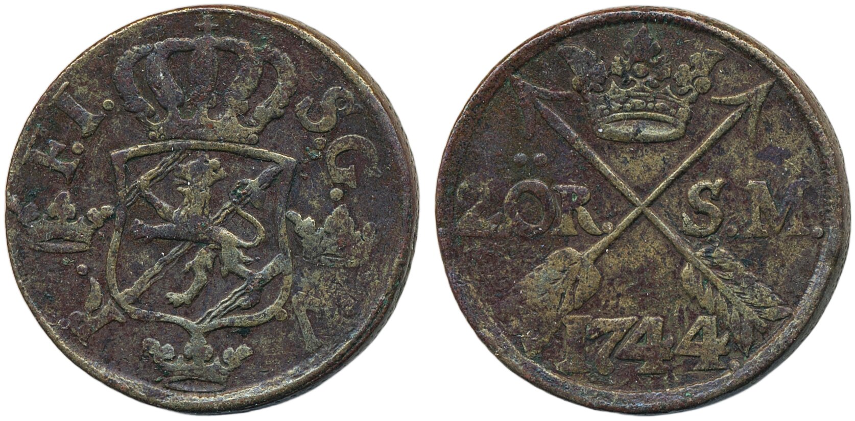 Coins, Sweden. Fredrik I, SM 316, 2 öre SM 1744. 27.23 g. Avesta. With dots at year. 1?