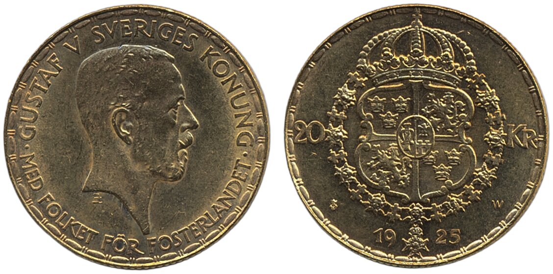 Coins, Sweden. Gustav V, SM 1, 20 kronor 1925. 1+/01.