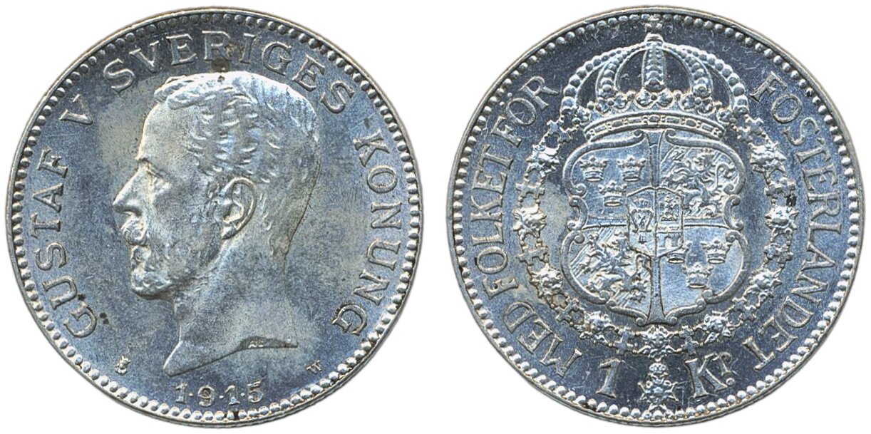 Coins, Sweden. Gustav V, MIS I.5c, 1 krona 1915. 01.