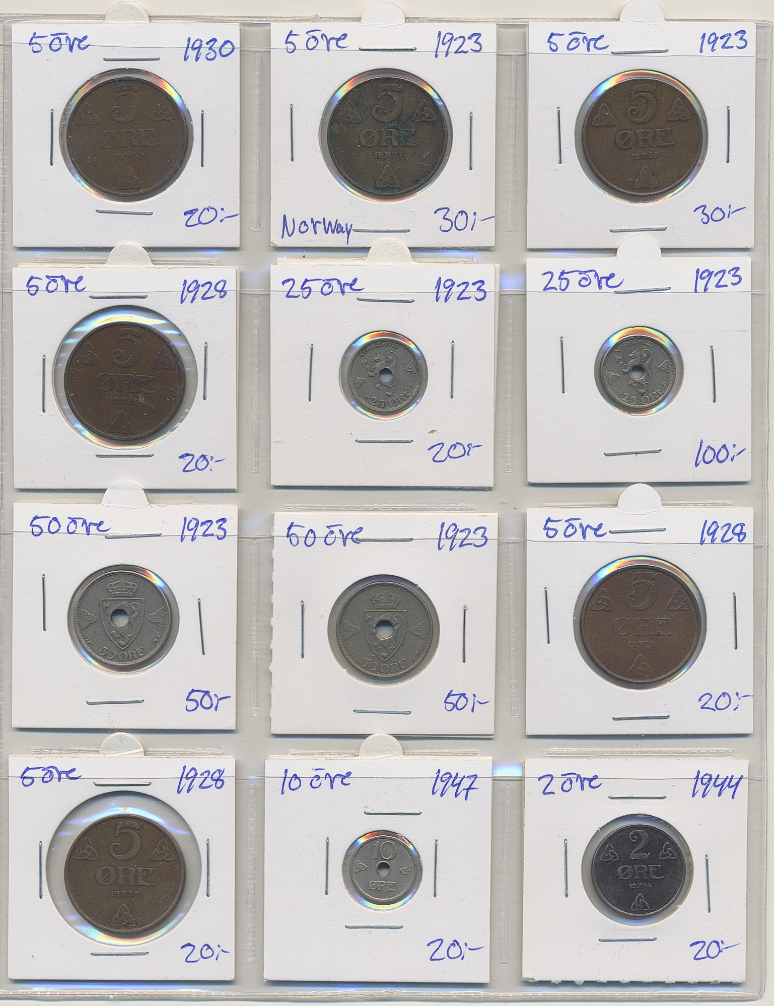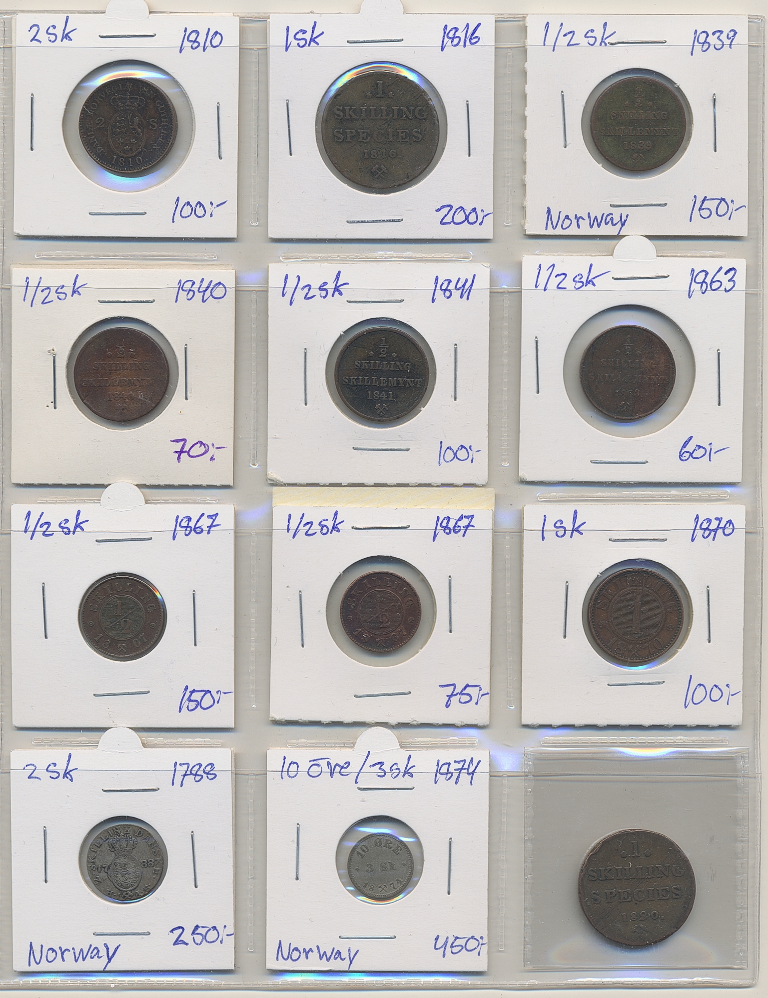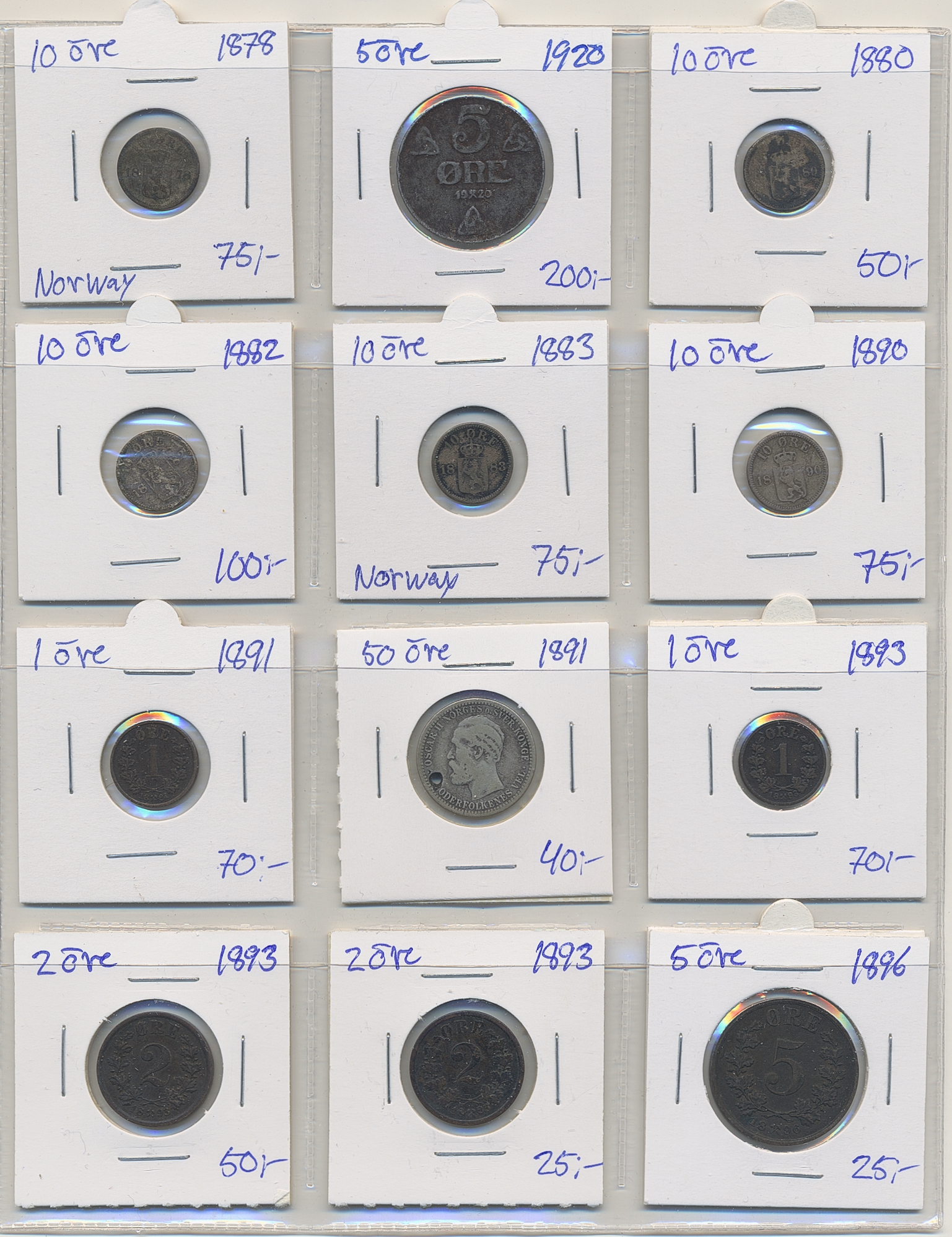 Coins, Norway. One album with 88 coins in silver, bronze and iron, 1788–1947, mixed quality.