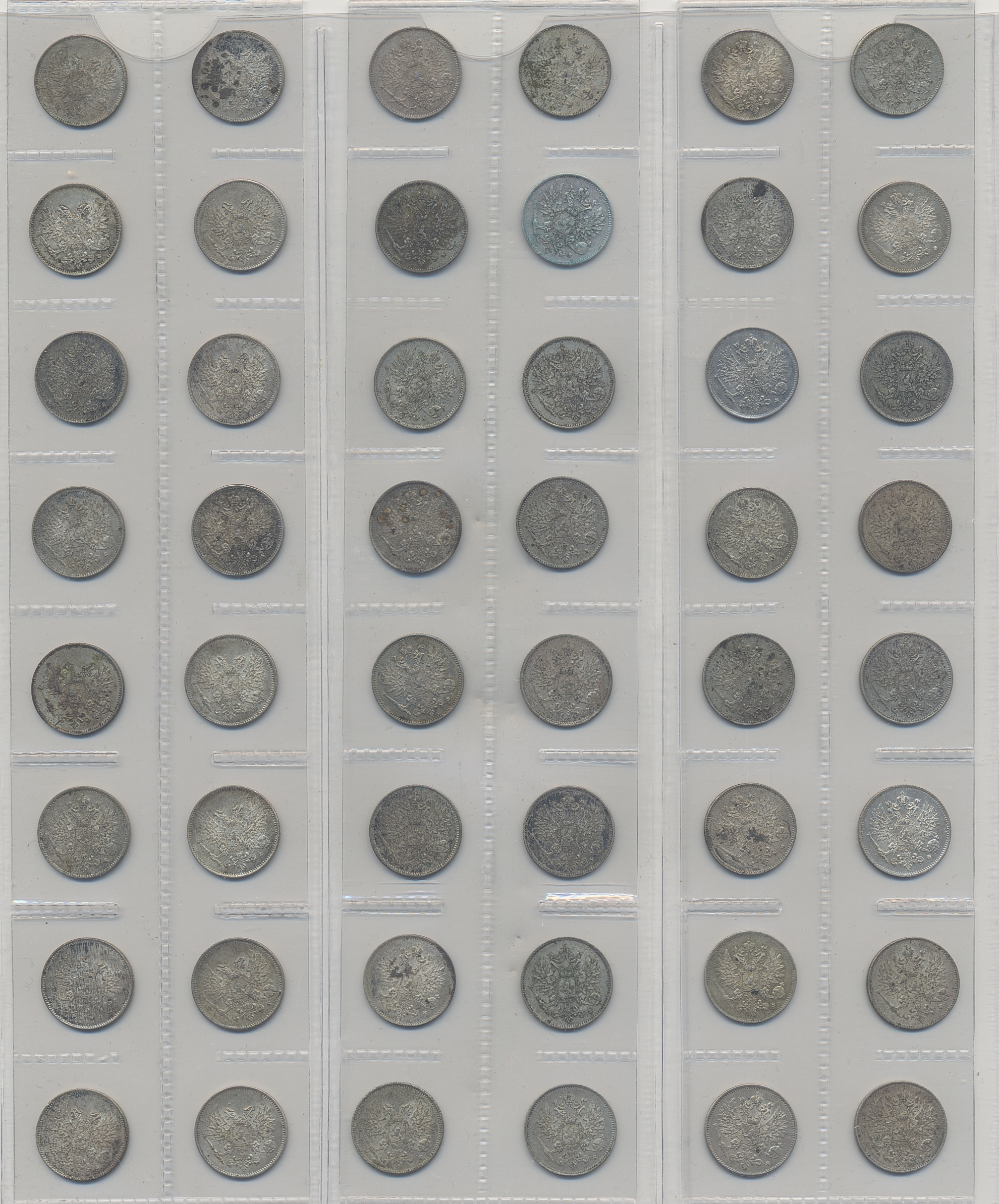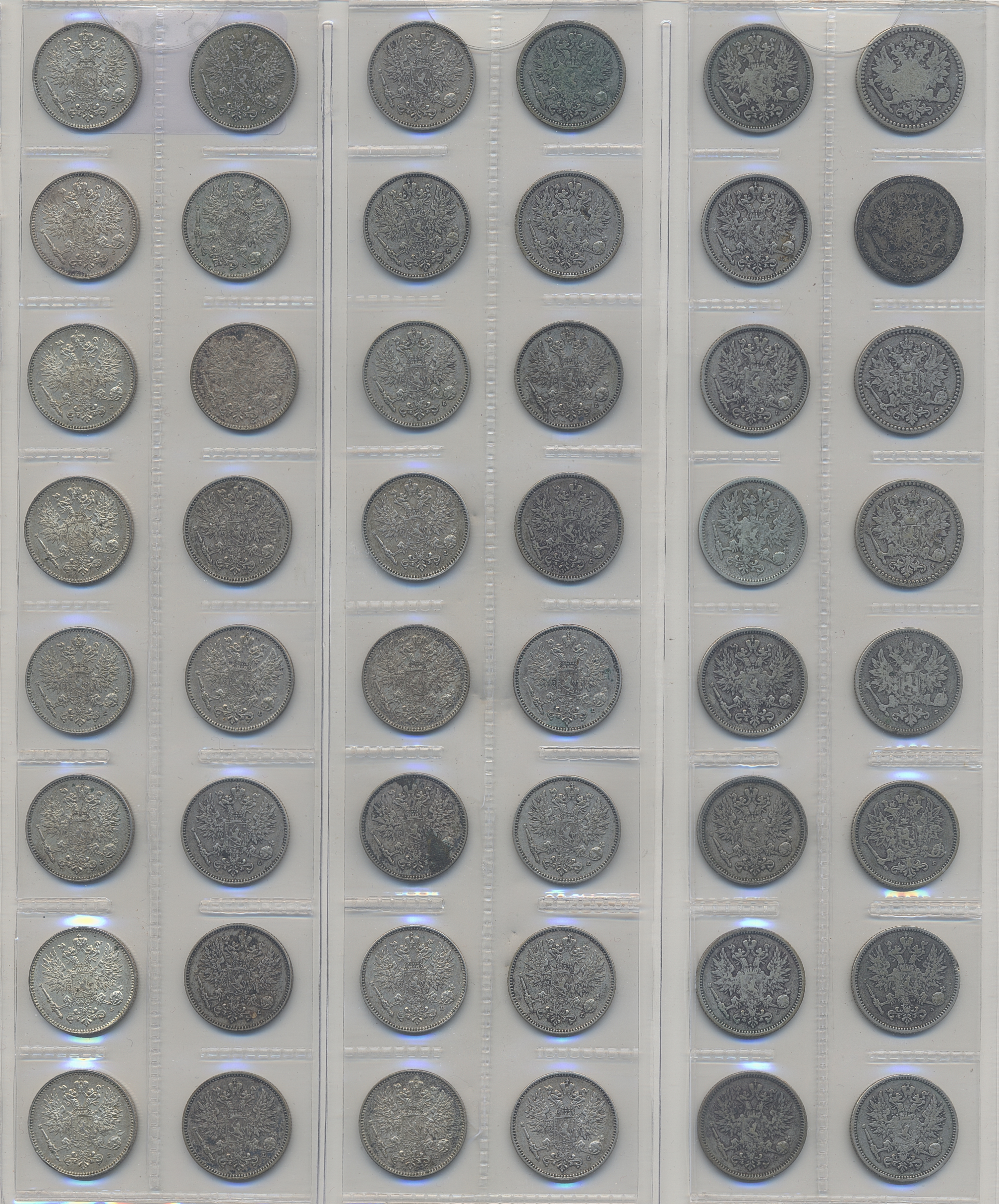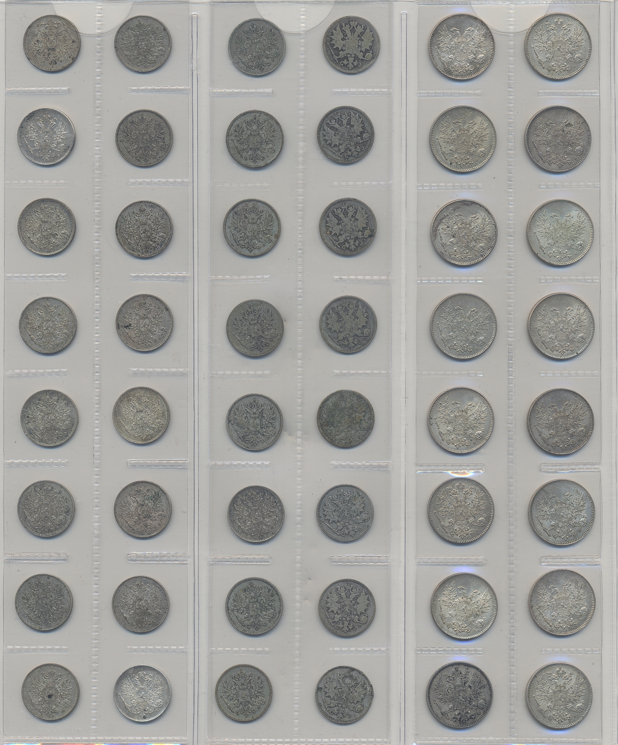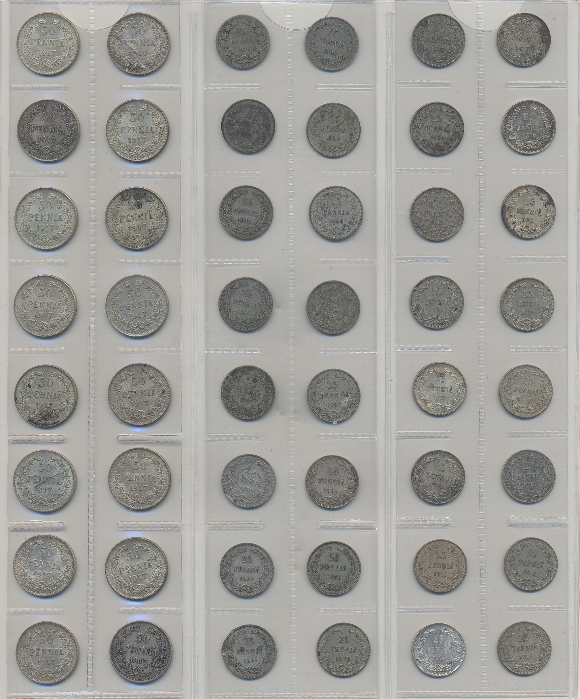 Coins, Finland. Collection of silver coins from Finland 1866–1917, 50 penniä 160 pcs and 25 penniä 80 pcs. In total 240 pcs. Many in high quality. Please inspect!