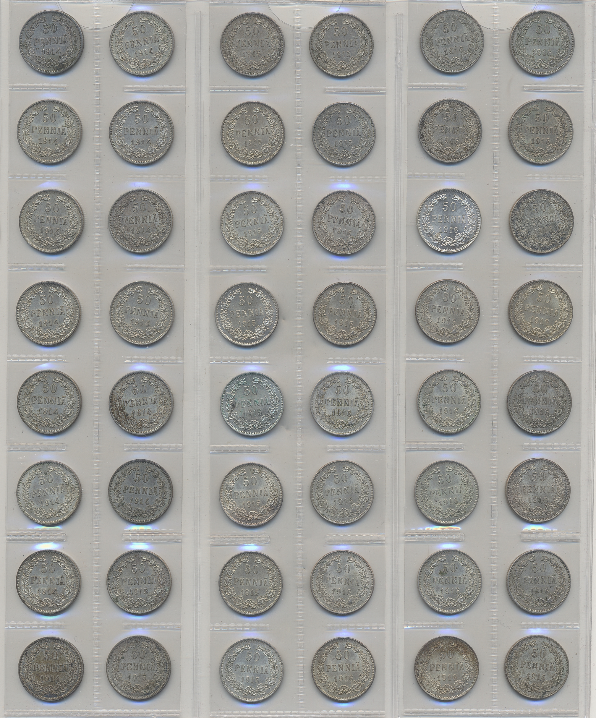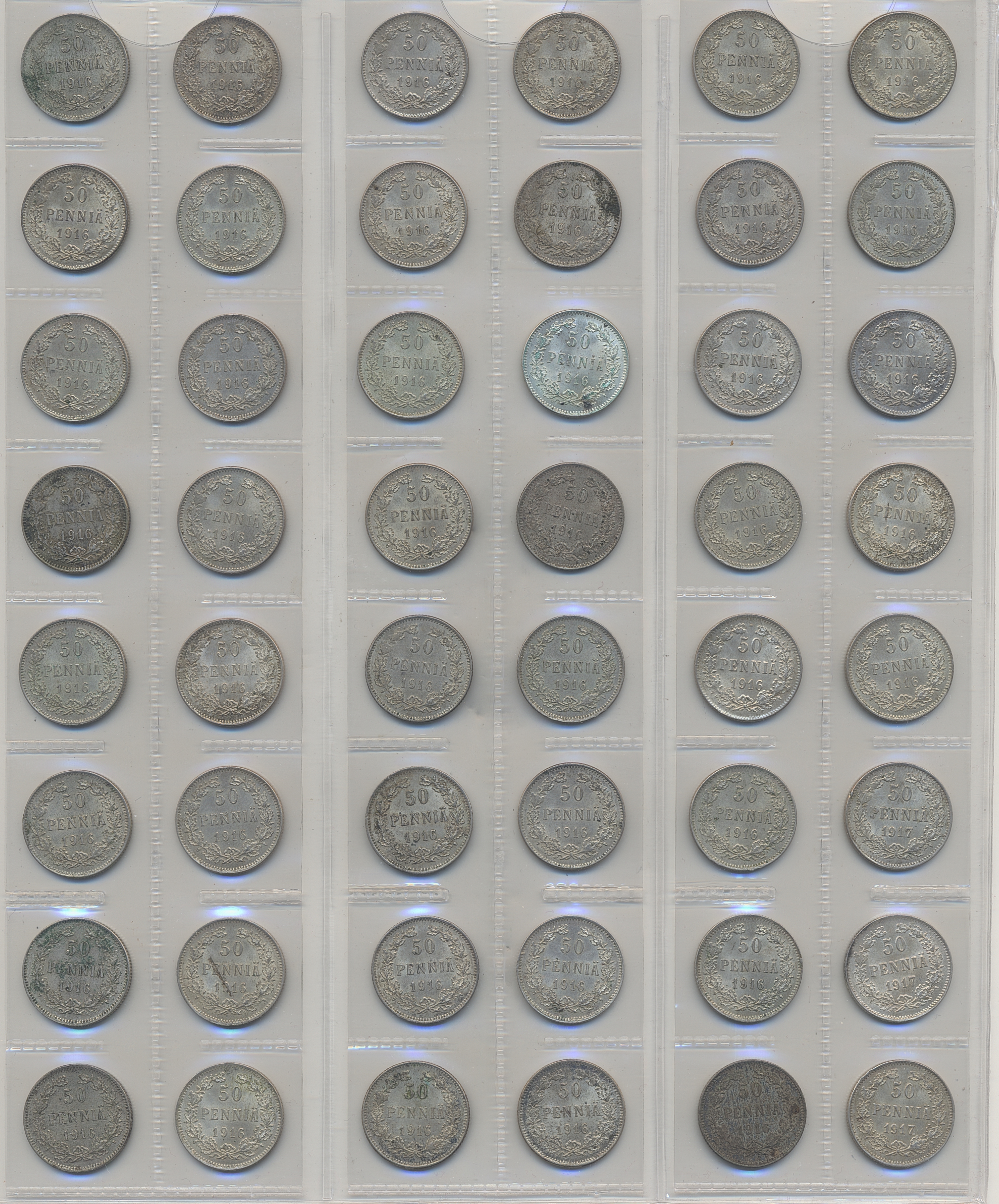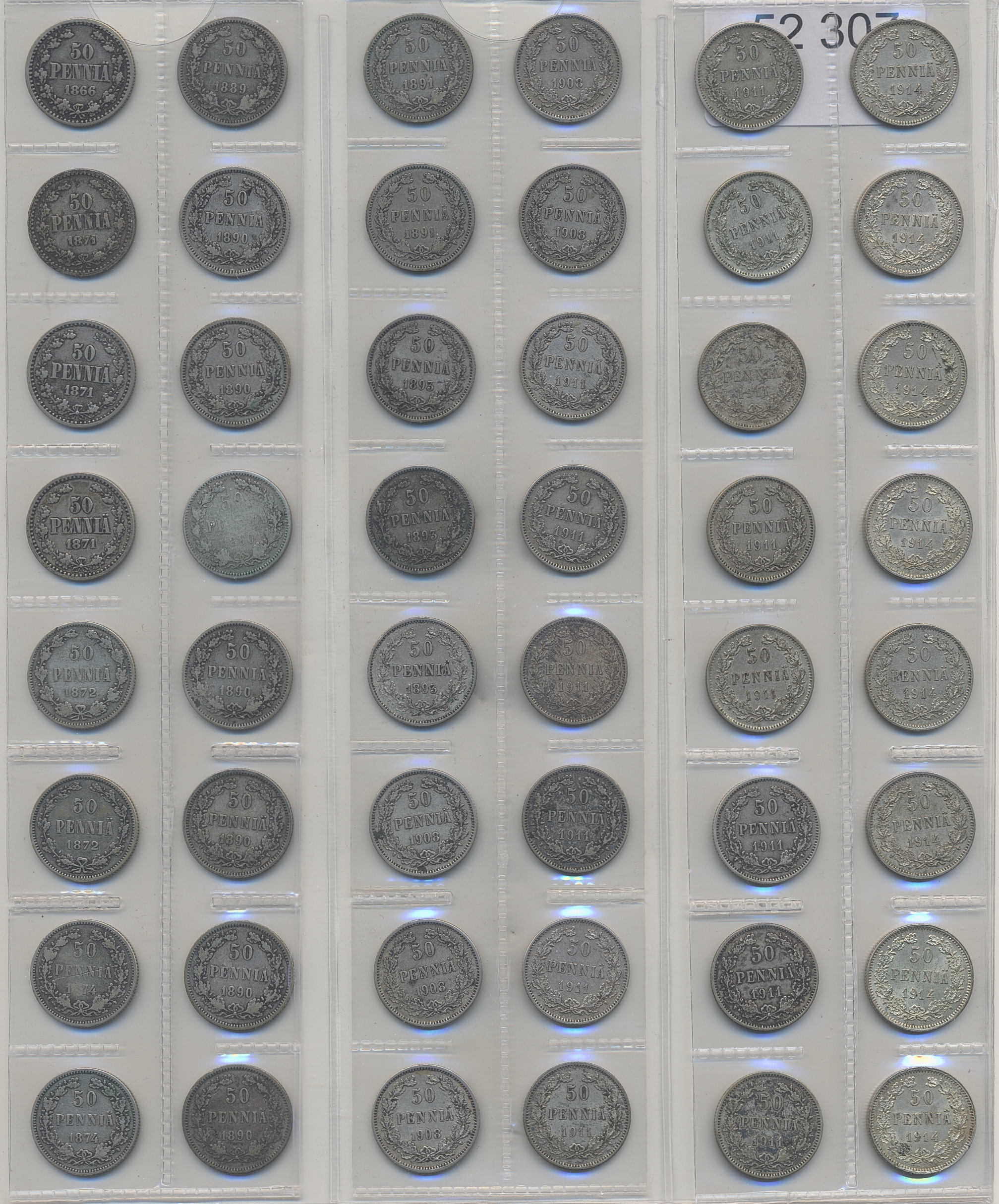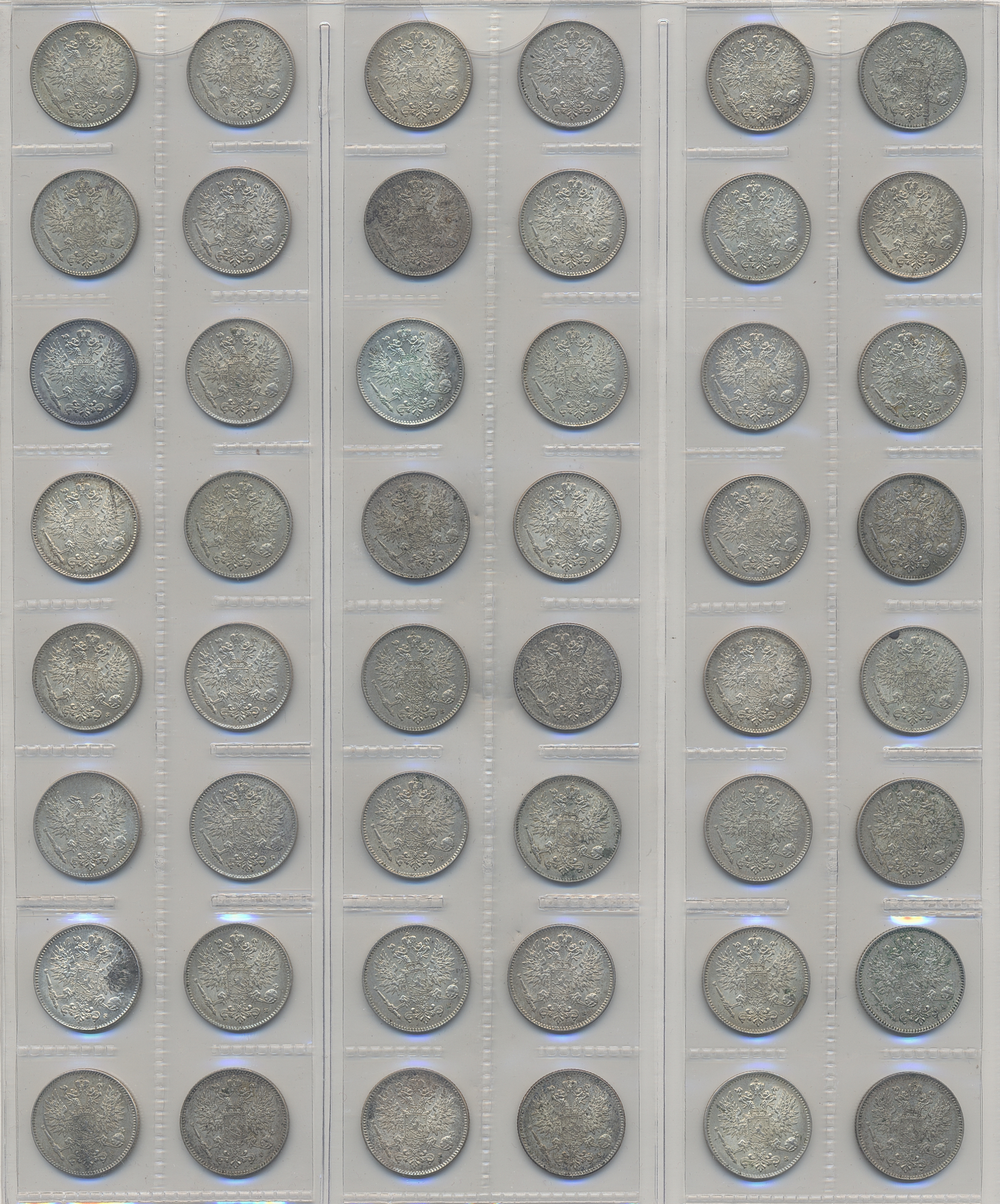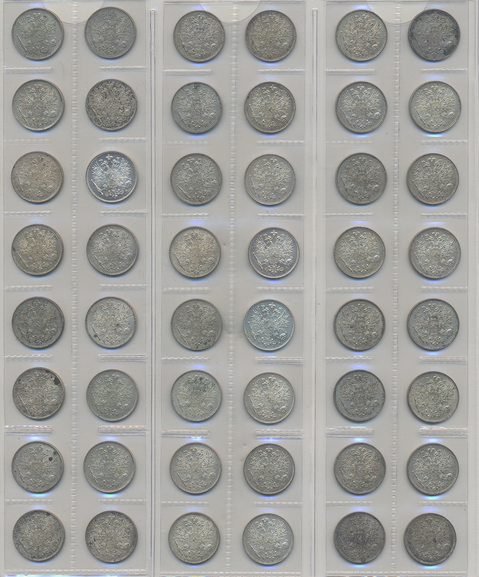 Coins, Finland. Collection of silver coins from Finland 1866–1917, 50 penniä 160 pcs and 25 penniä 80 pcs. In total 240 pcs. Many in high quality. Please inspect!