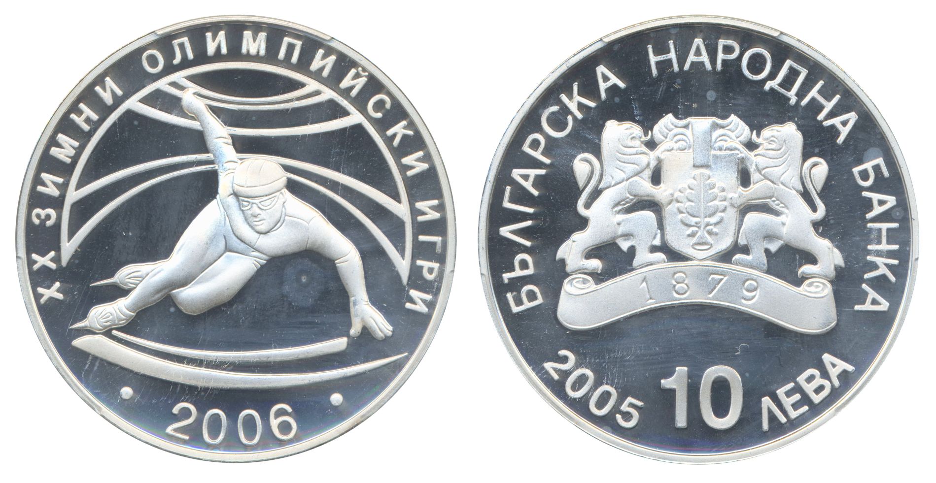 Coins, Bulgaria. KM 280, 10 leva 2005. Olympics – Shorttrack. Graded by PCGS as PR68DCAM. Proof. See certification at PCGS