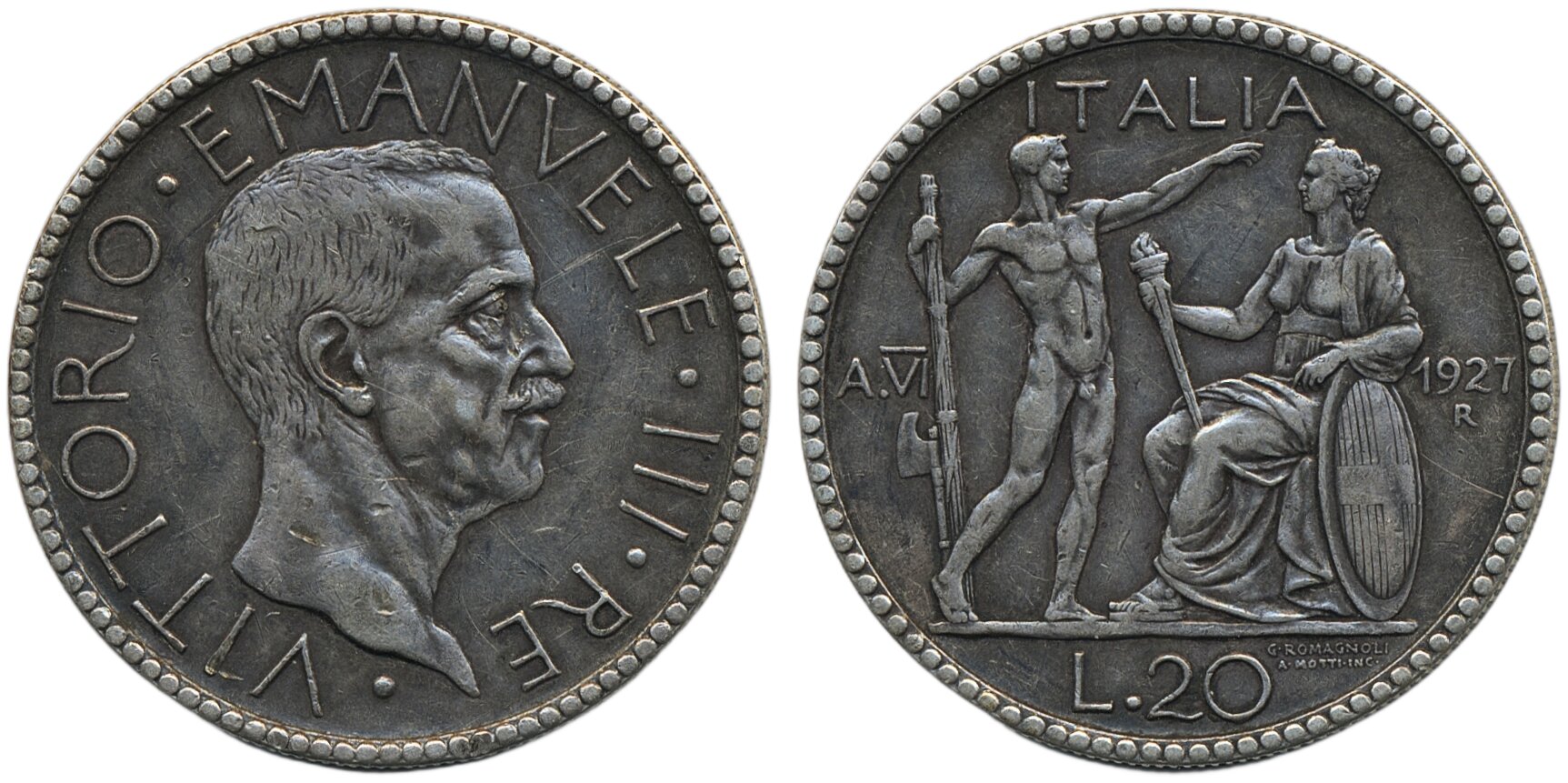 Coins, Italy. Vittorio Emmanuele III (1900-1946), KM 69, 20 lire 1927 R. VF.