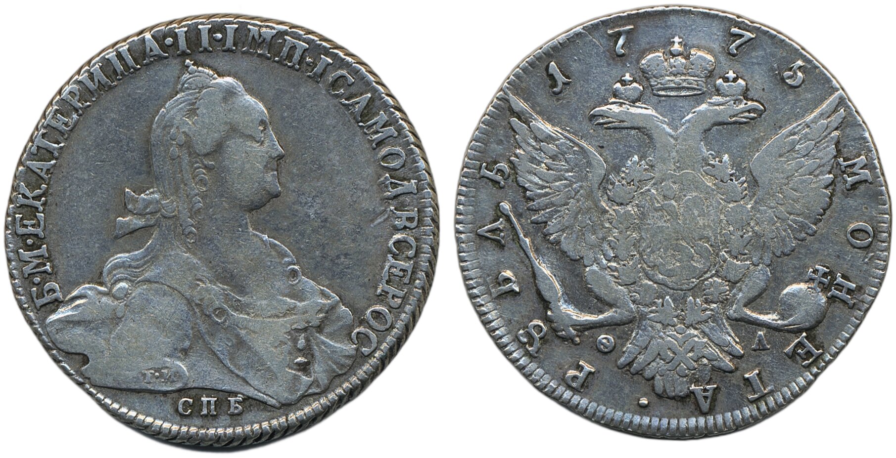 Coins, Russia. Catherine II, Bitkin 219, 1 rouble 1775. 23.65 g. St. Petersburg. F-VF.