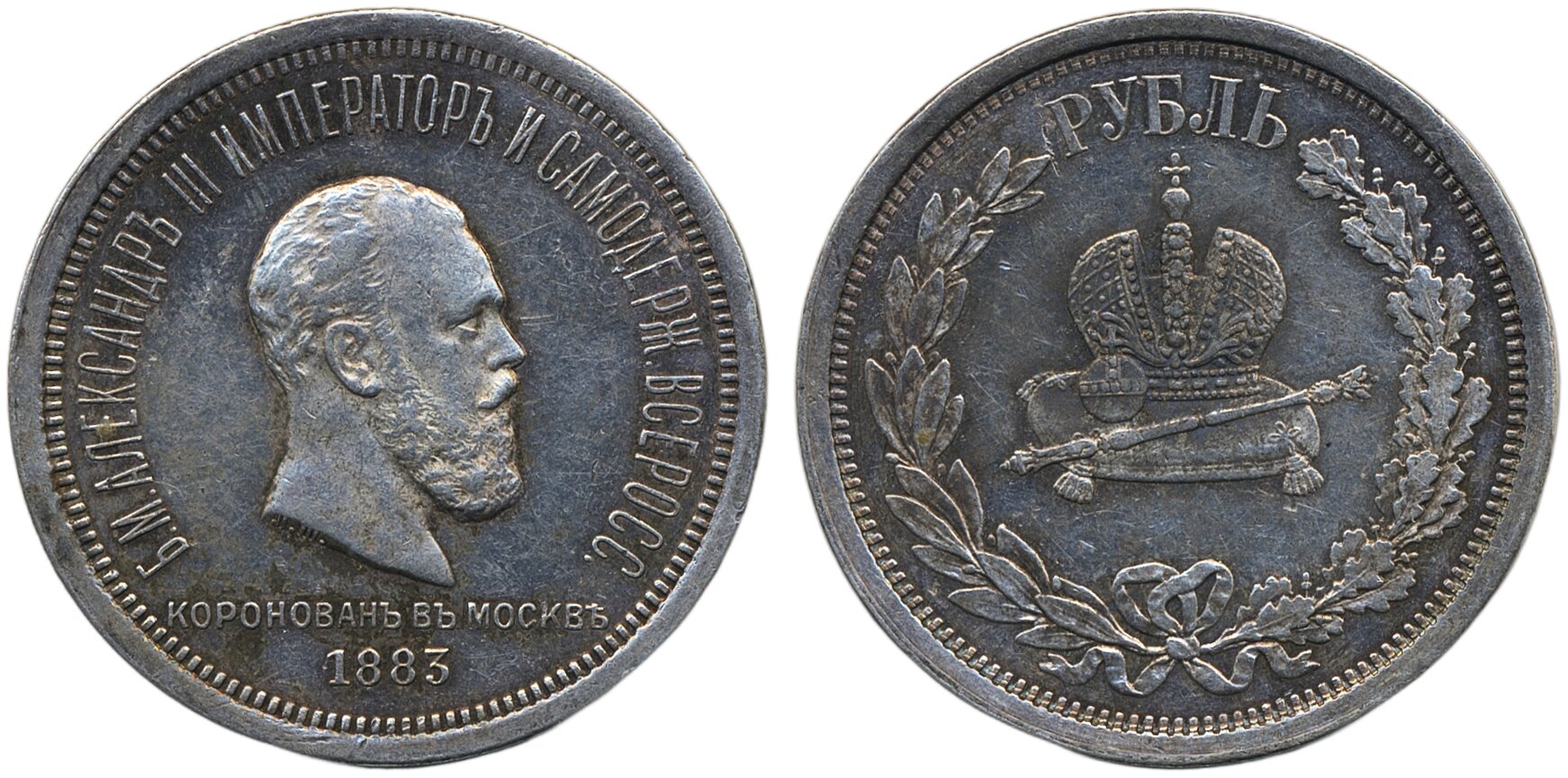 Coins, Russia. Alexander III, Bitkin 217, 1 rouble 1883. Commemorative type for Coronation. Lustrous example. VF-XF)(XF.