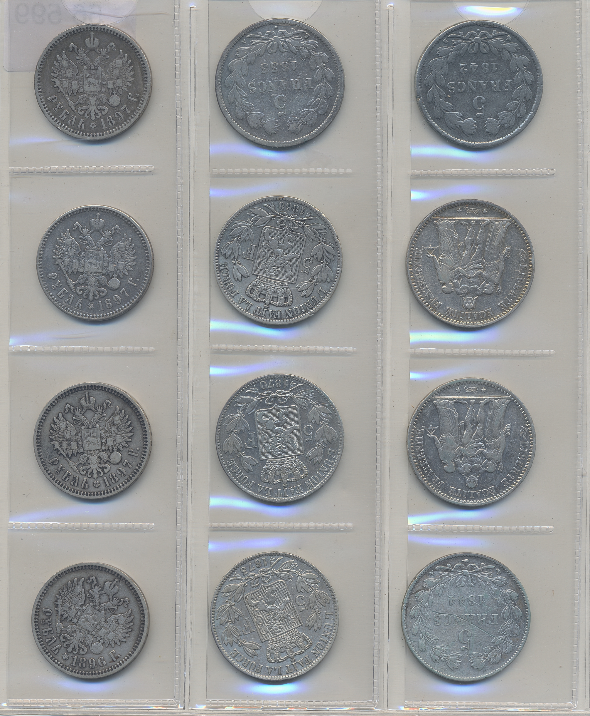 Coins, ALL WORLD. Collection of crown size silver coins including 5 pcs of Russia rubels. In total 12 pcs. Please inspect!