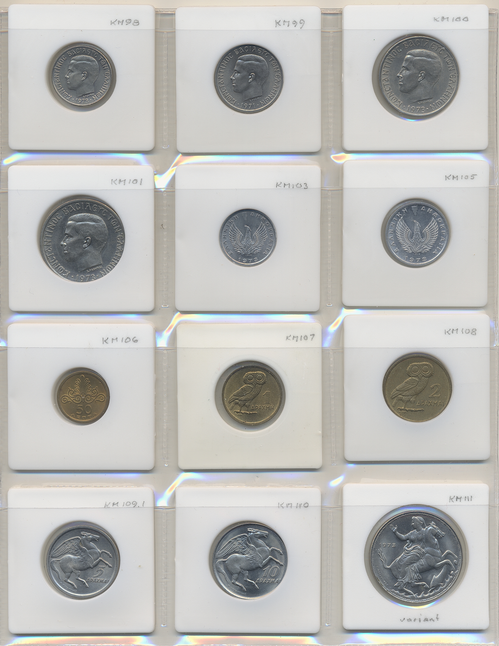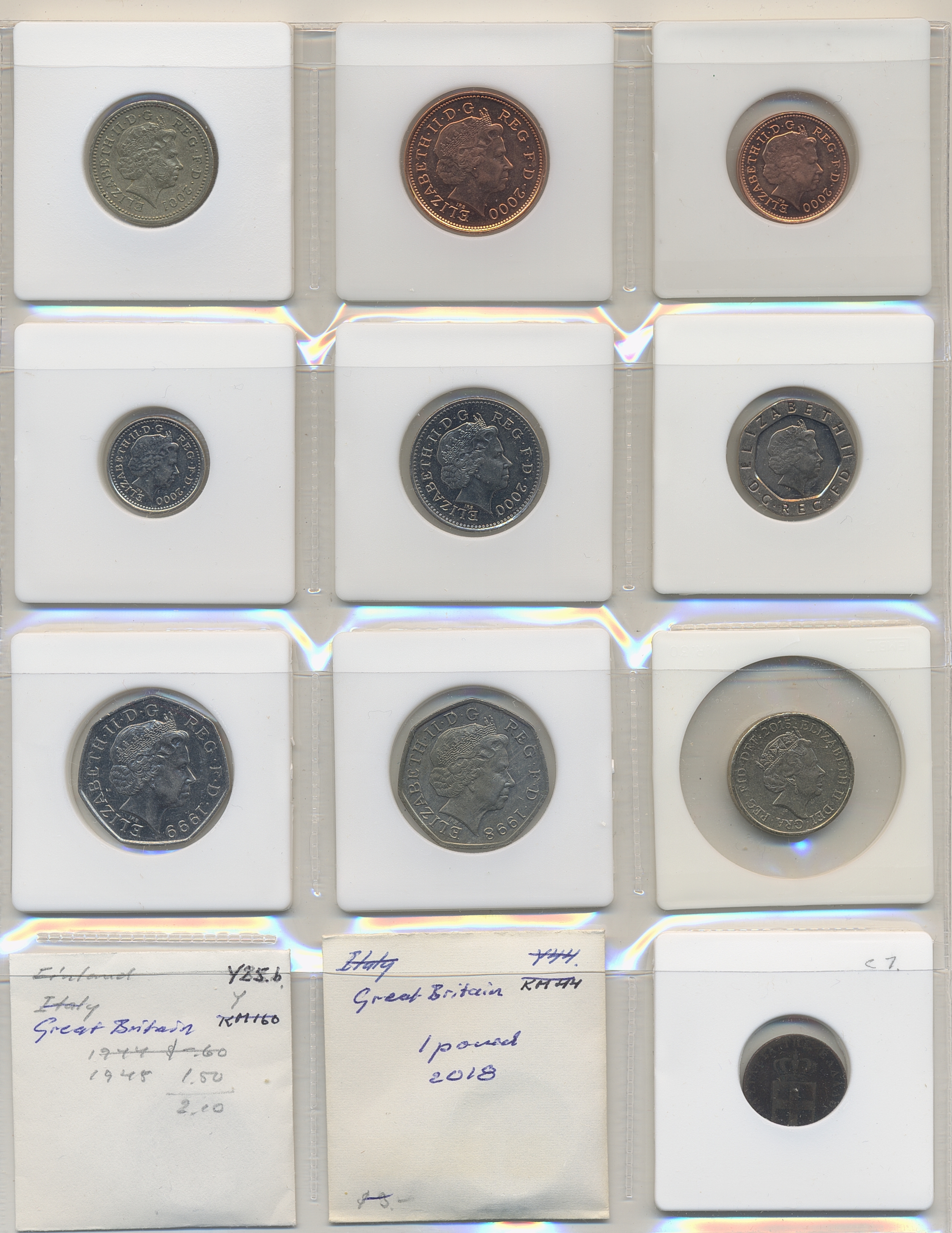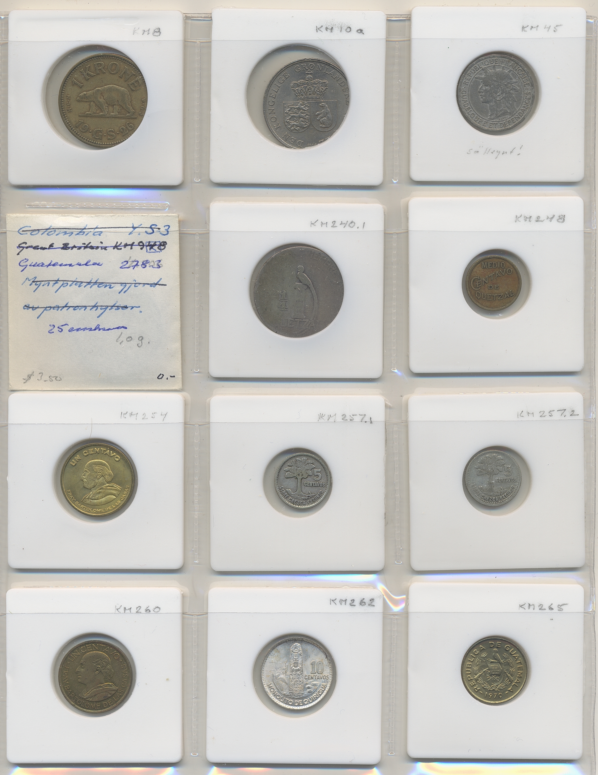 Coins, ALL WORLD. Collection of coins in album, including Great Britain, Greece, Grenland, Guatemala. In total 144 pcs. Please inspect!