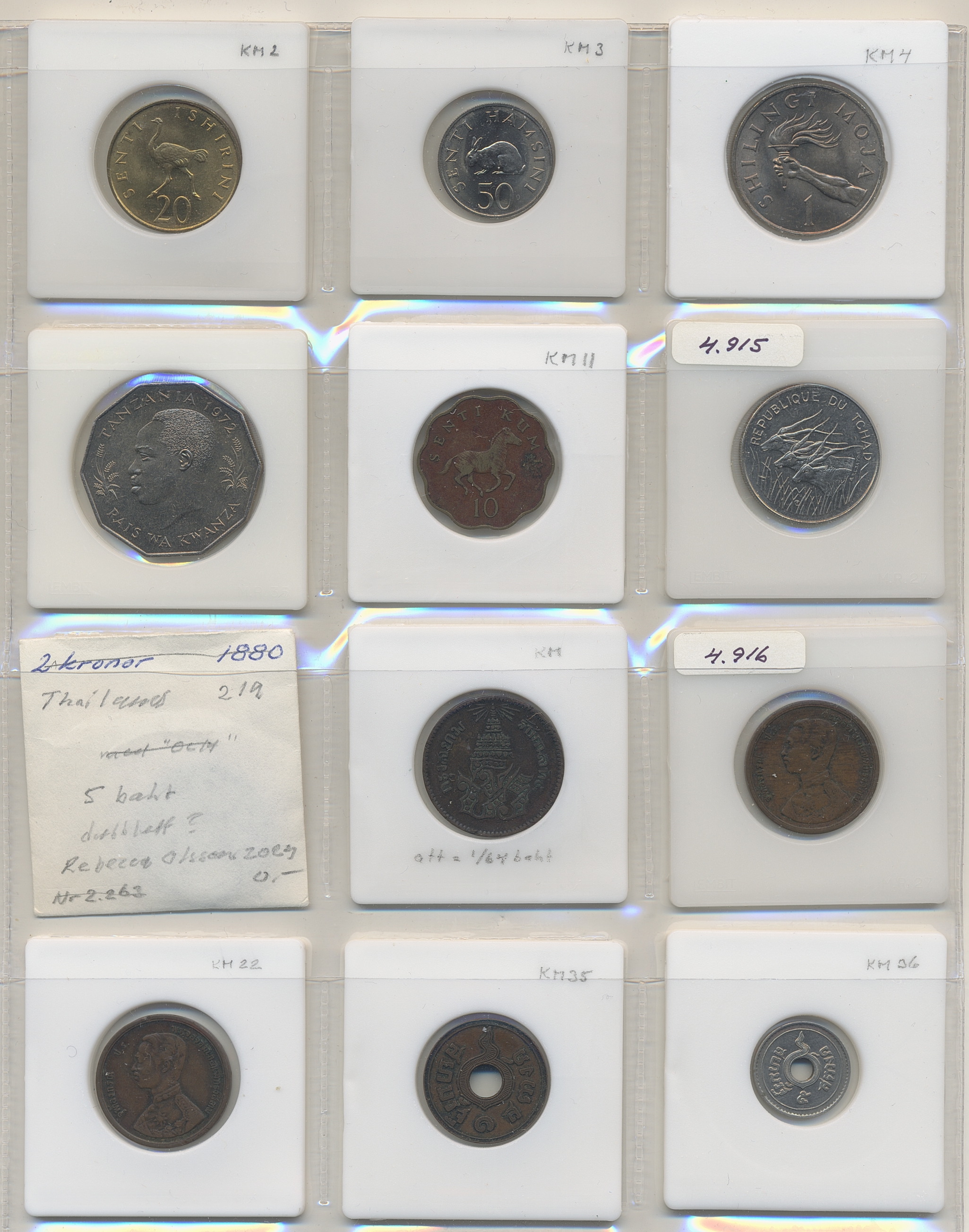 Coins, ALL WORLD. Collection of coins in album, including Syria, Tanzania, Thailand, Tibet, Tonga, Tunisia. In total 144pcs. Please inspect!