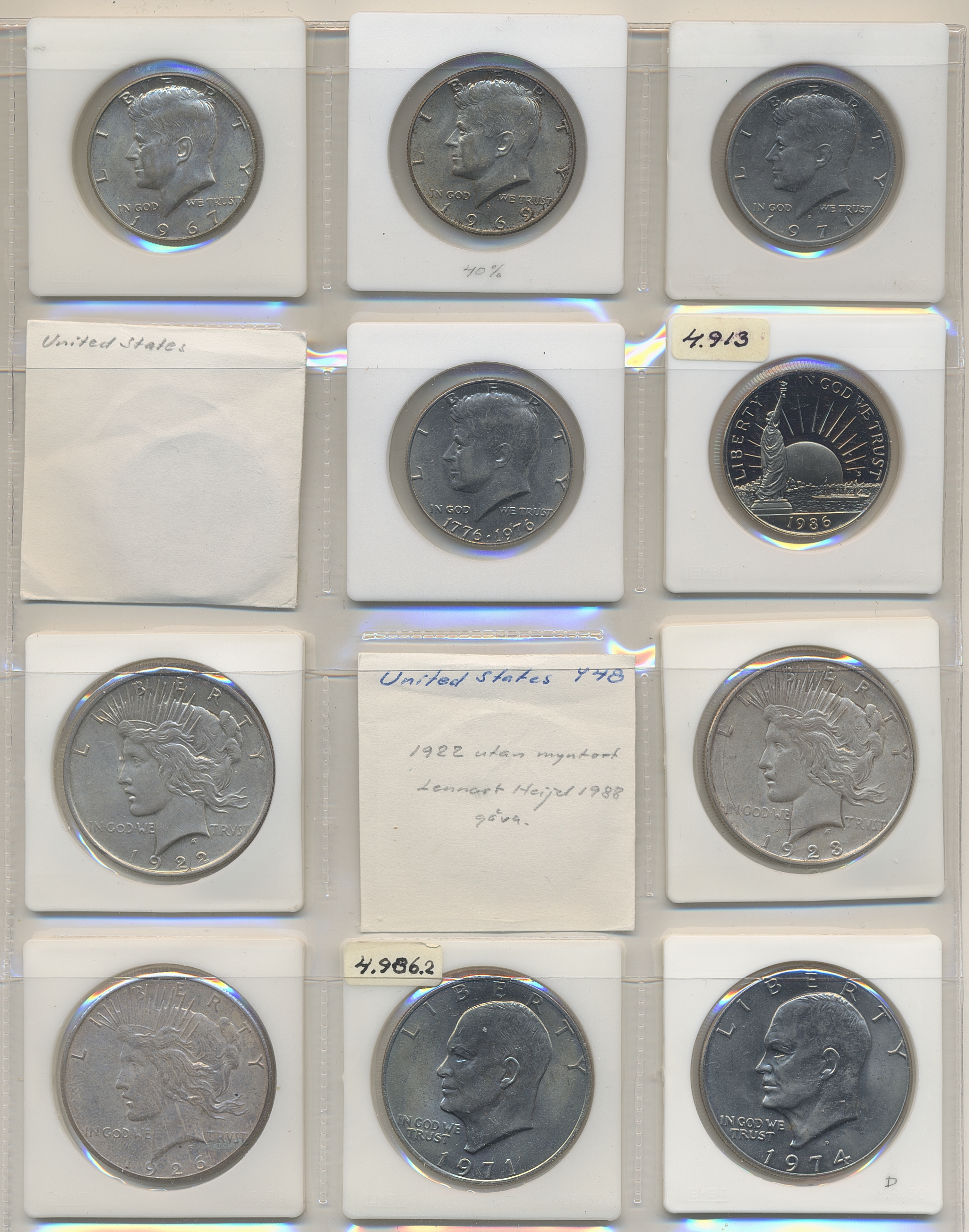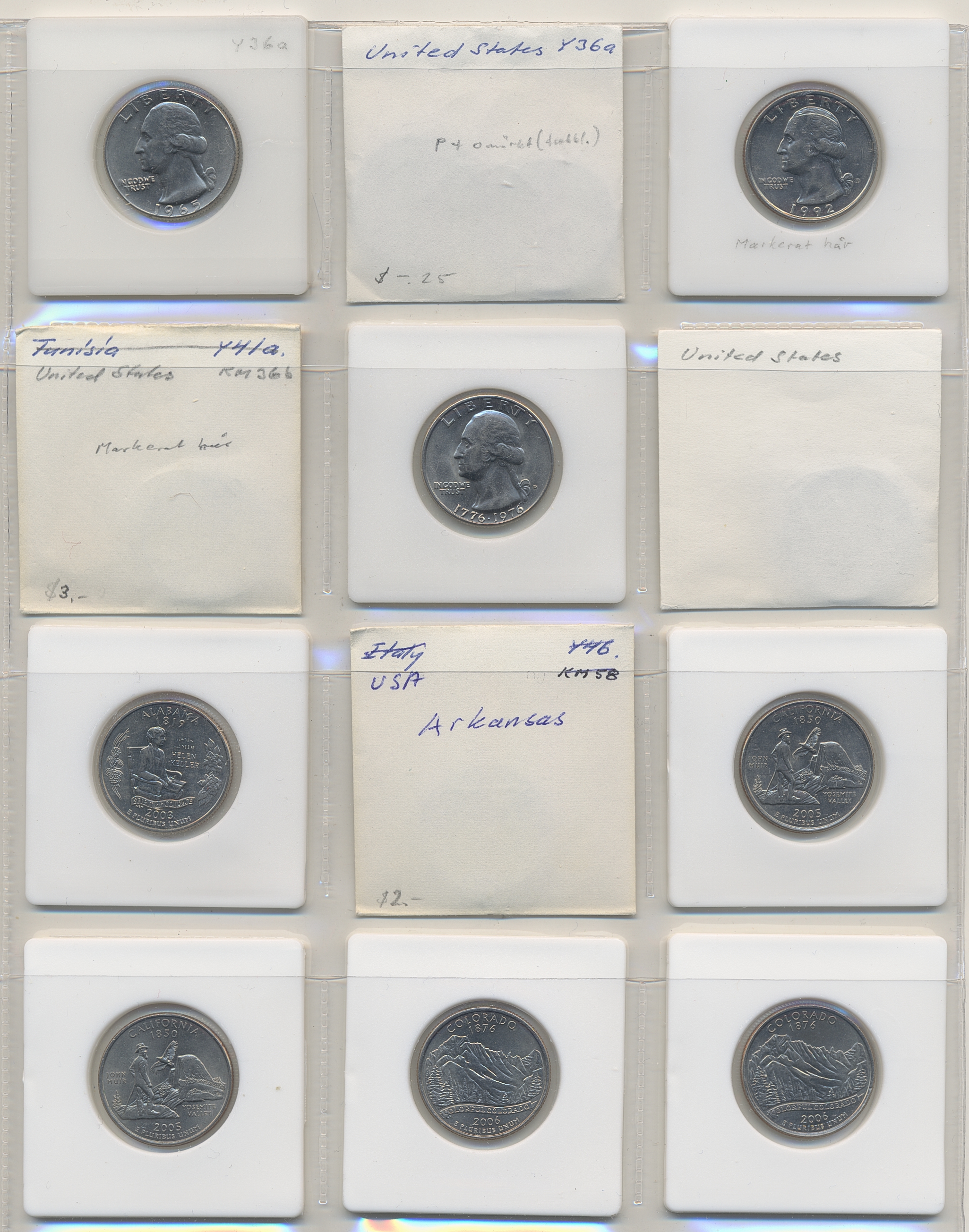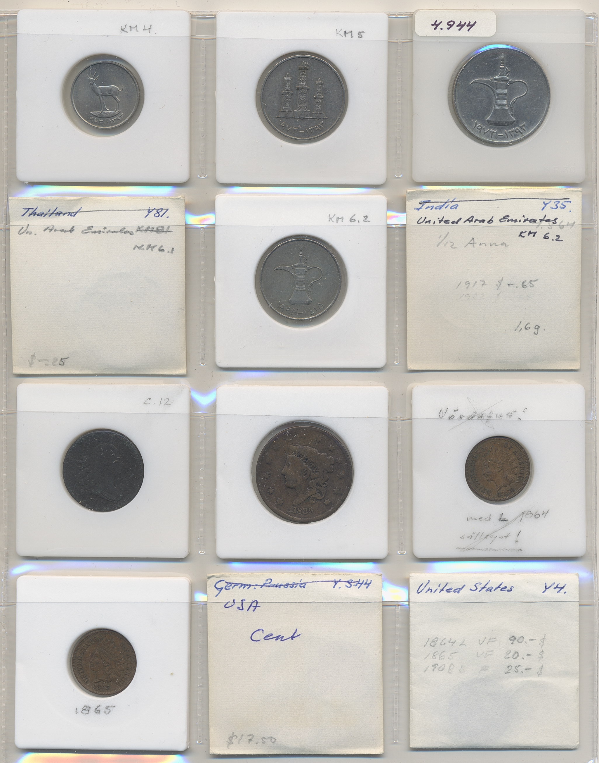 Coins, ALL WORLD. Collection of coins in album, including United Arab Emirates, USA. In total 144 pcs. Please inspect!