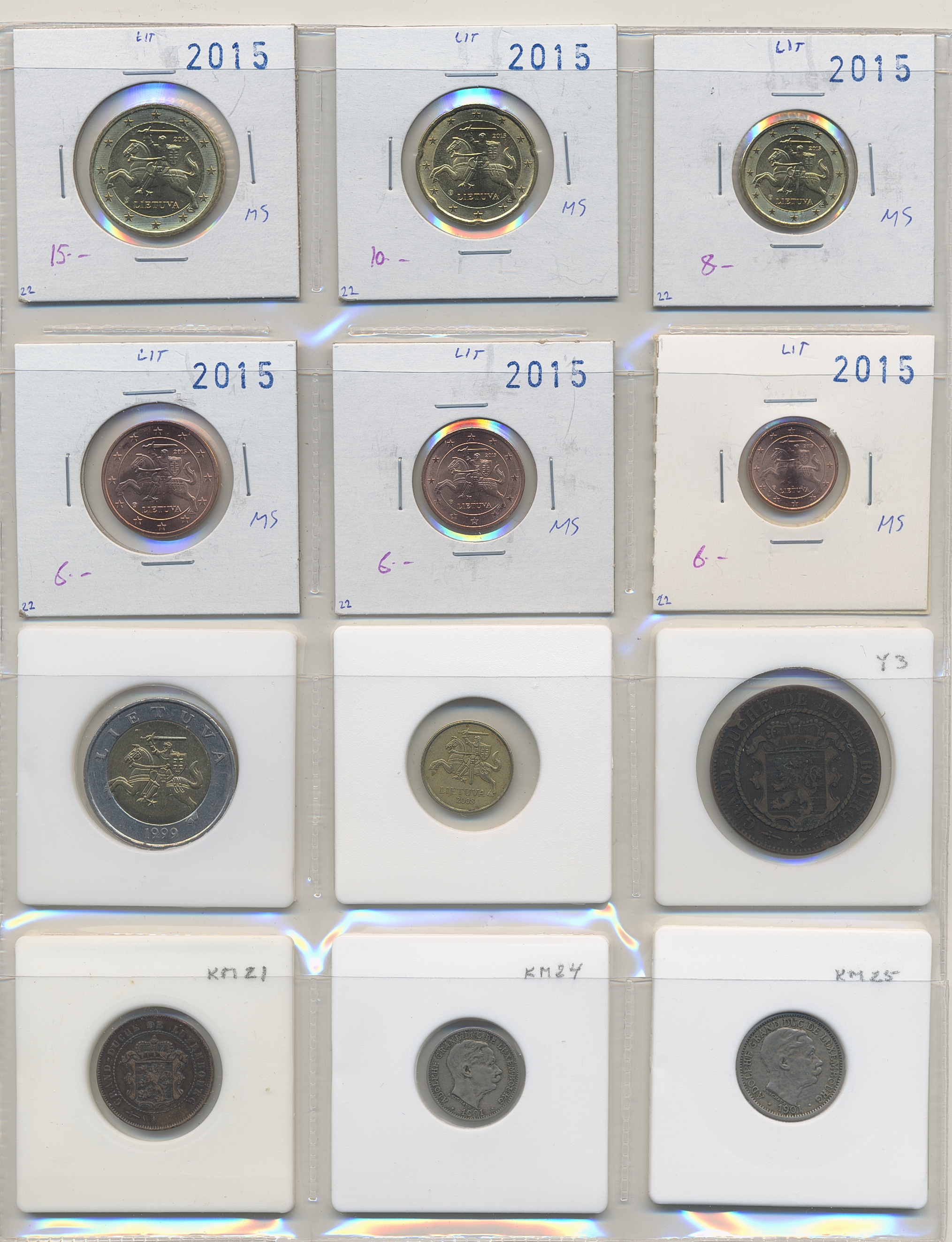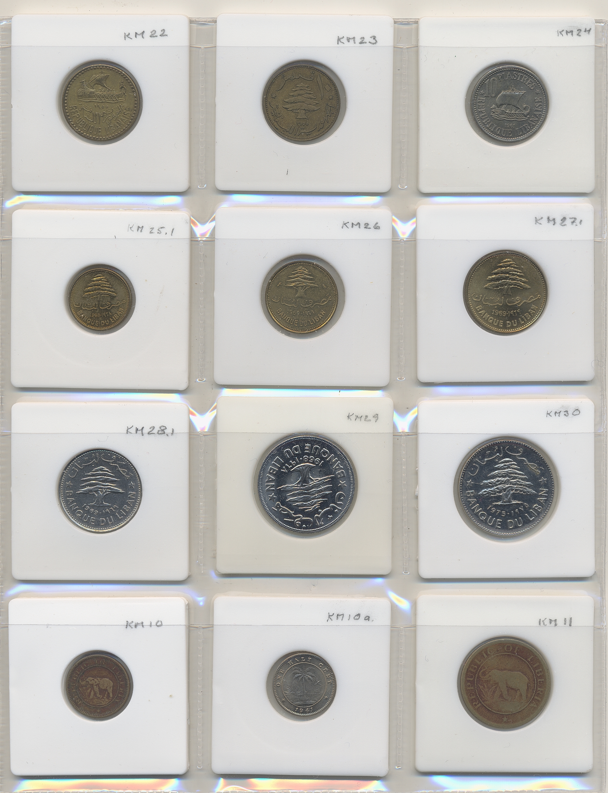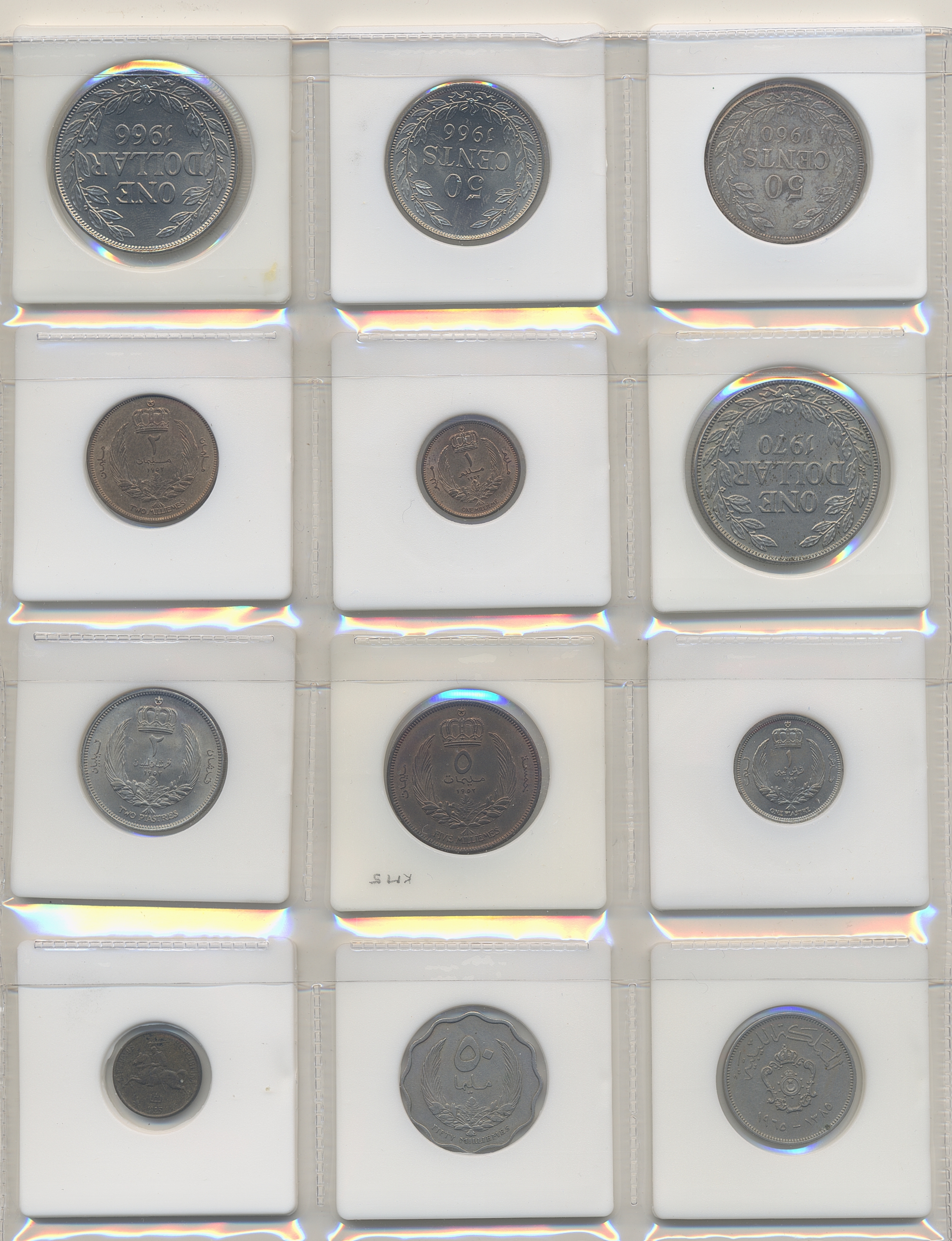 Coins, ALL WORLD. Collection of coins in album, including Libanon, Liberia, Libya, Lithuania, Luxemburg, Macau, Malaya. In total 144 pcs. Please inspect!