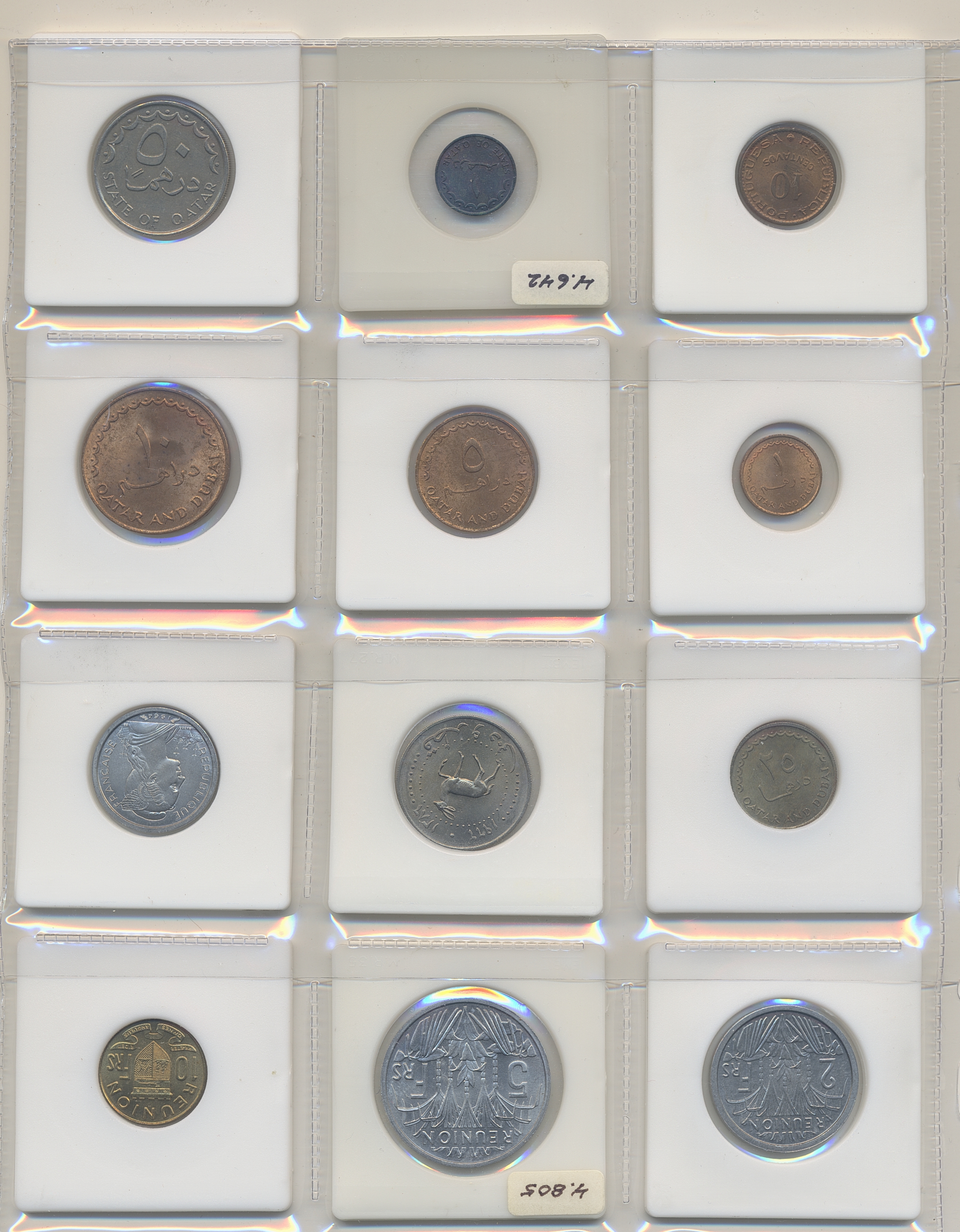 Coins, ALL WORLD. Collection of coins in album, including Poland, Portugal, Qatar, Rhodesia, Romania. In total 144 pcs. Please inspect!