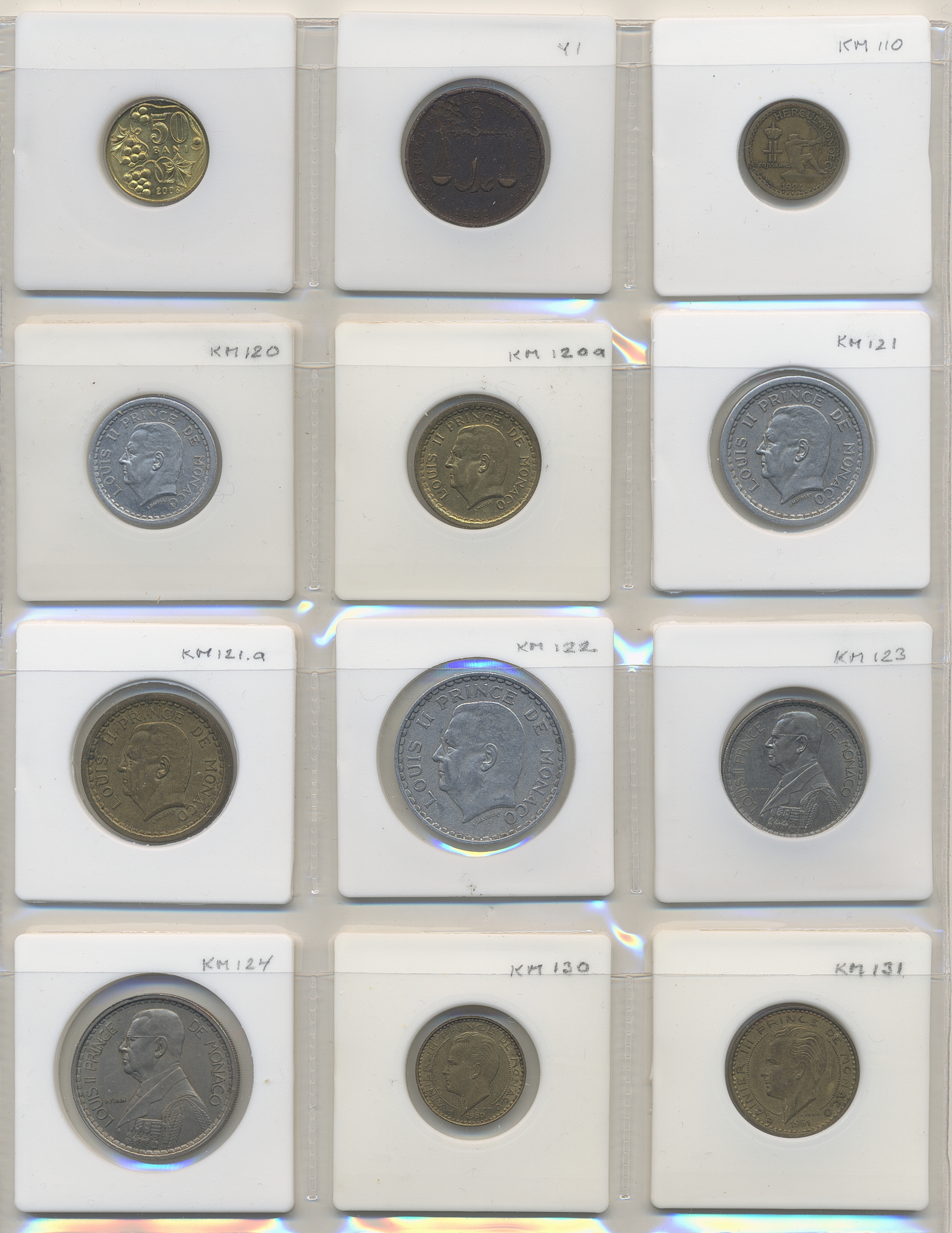Coins, ALL WORLD. Collection of coins in album, including Monaco, Tunisia, Turkey. In total 144 pcs. Please inspect!
