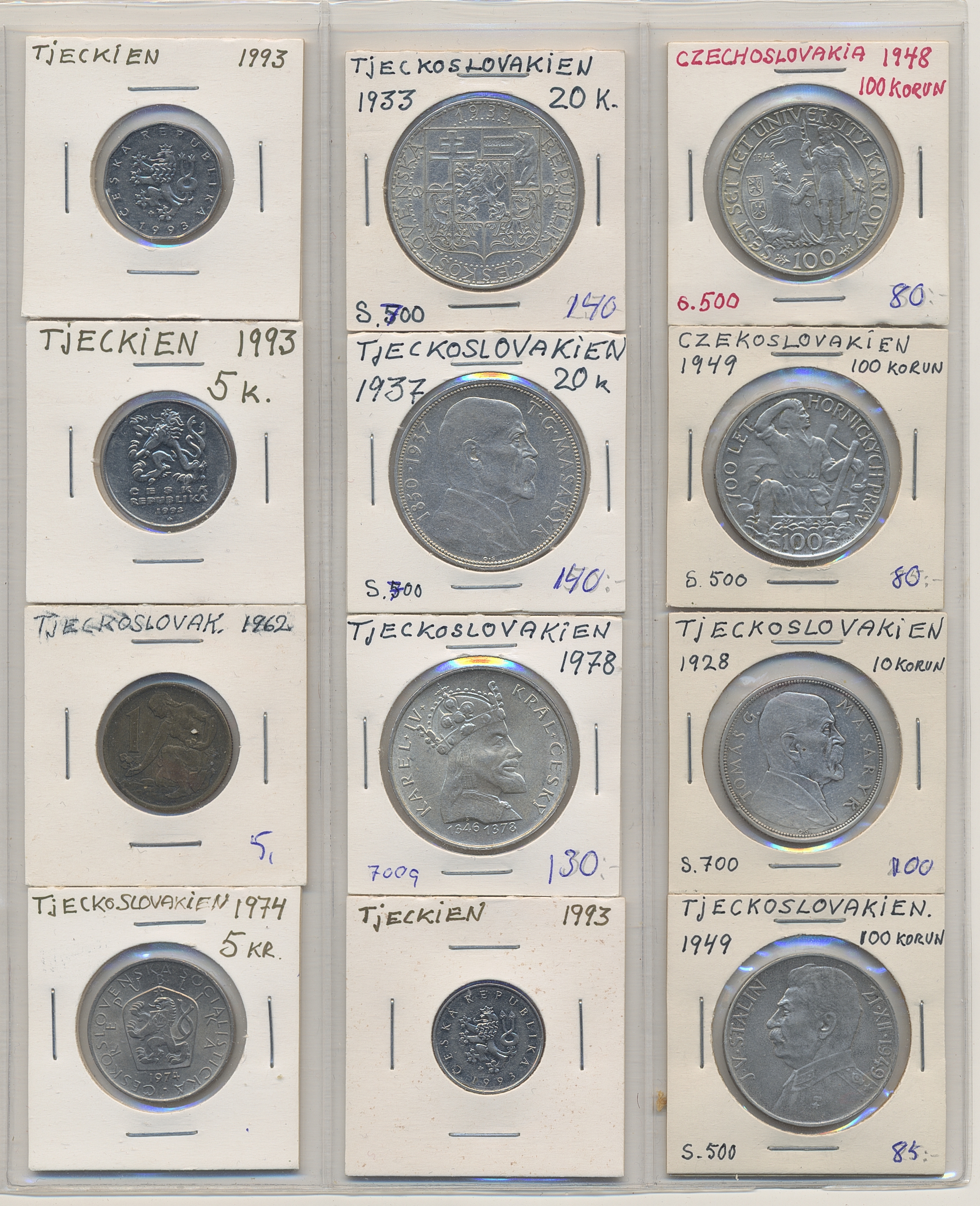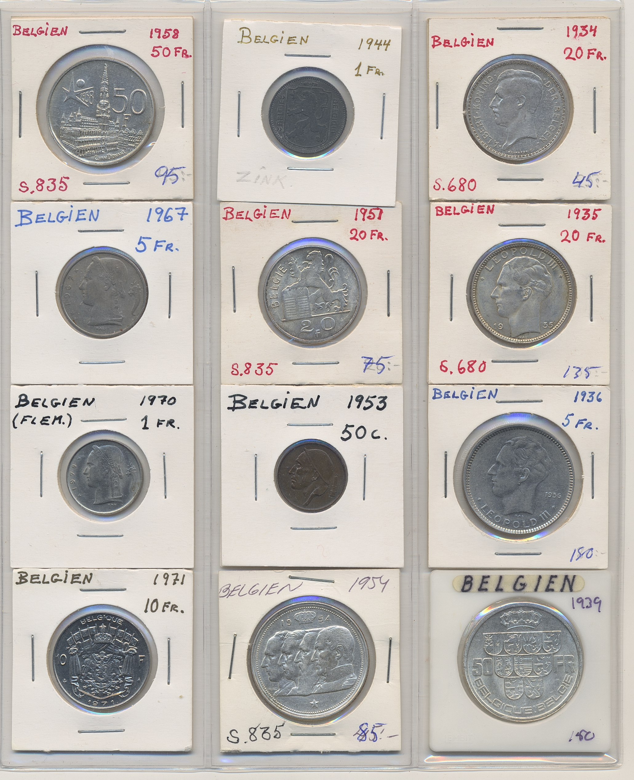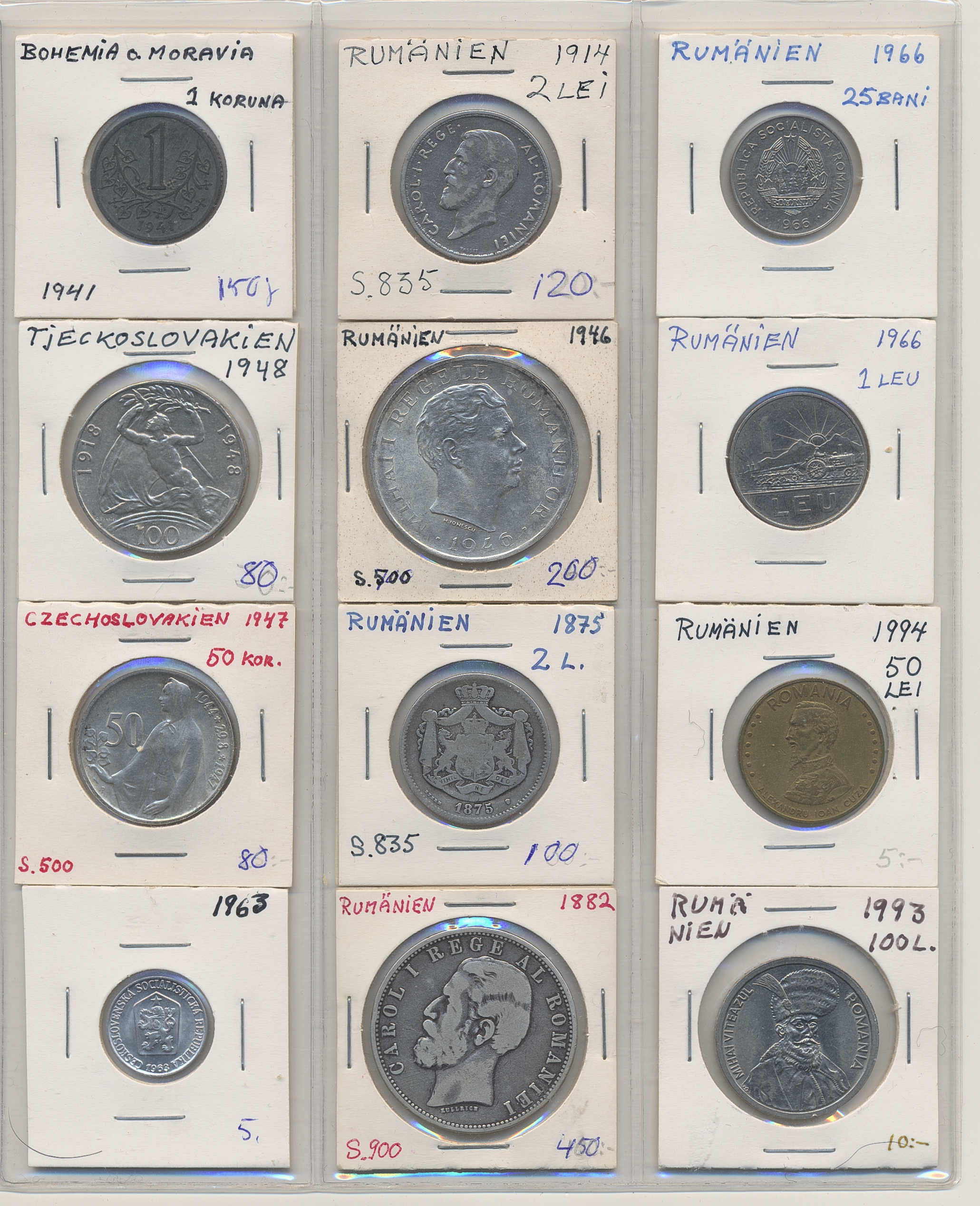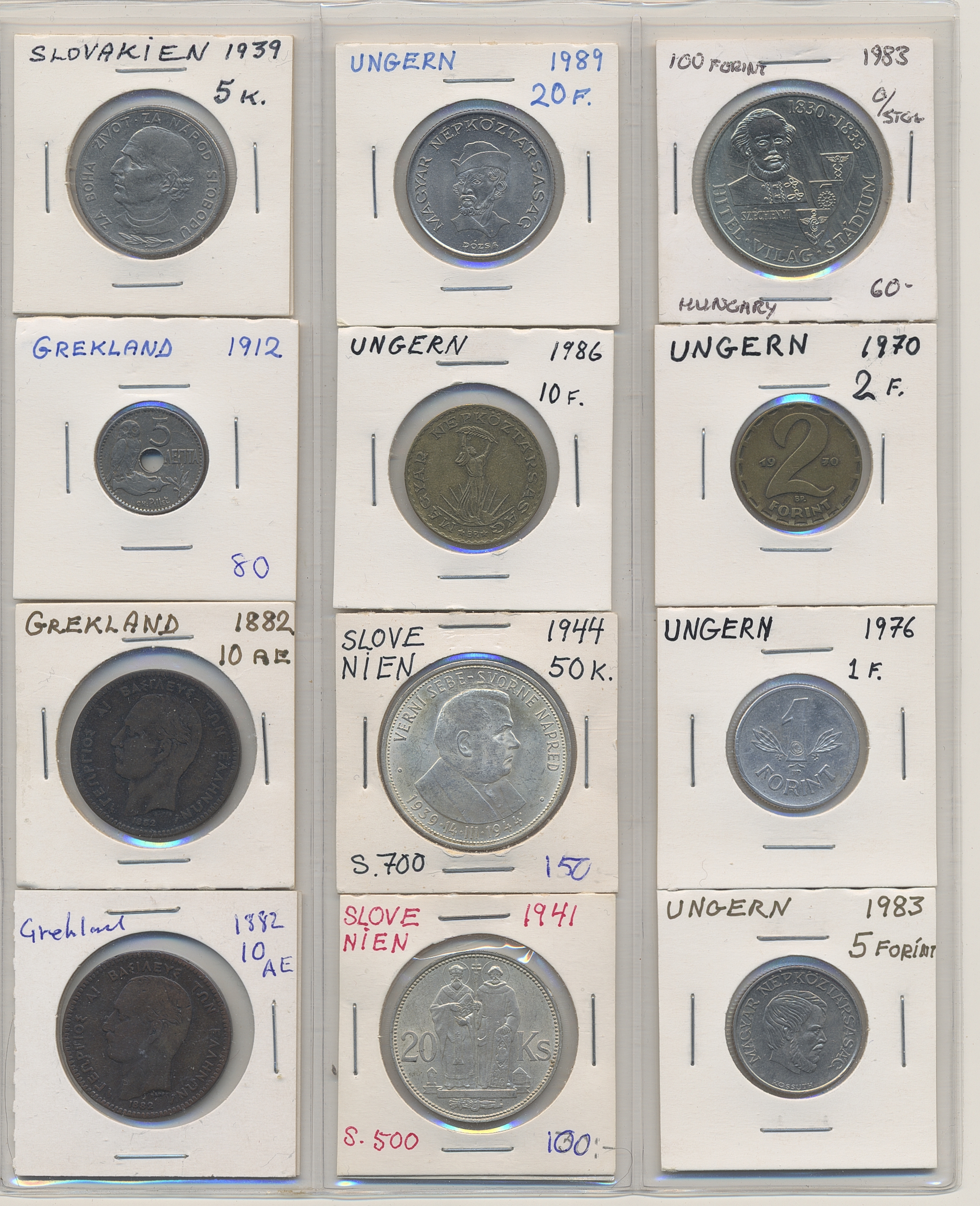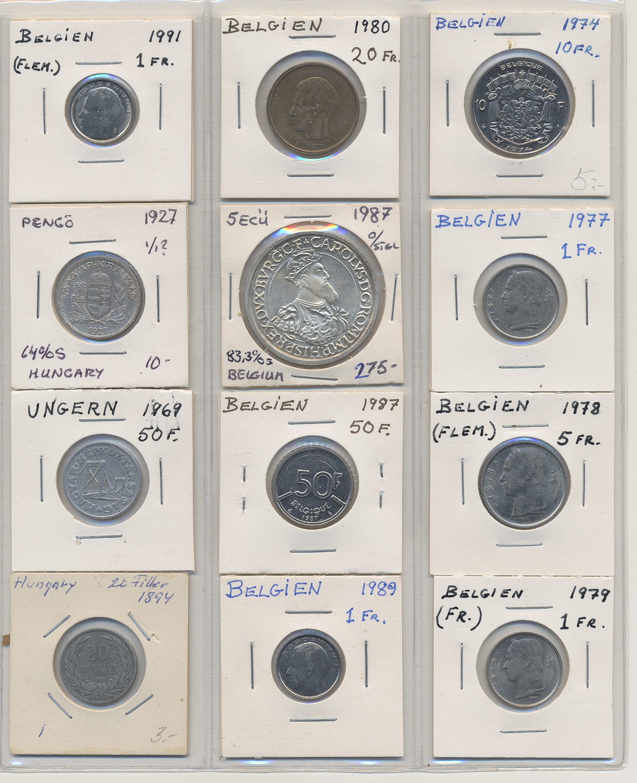 Coins, Europe. One album with 97 coins in silver and bronze, 1849–1998, mixed quality.