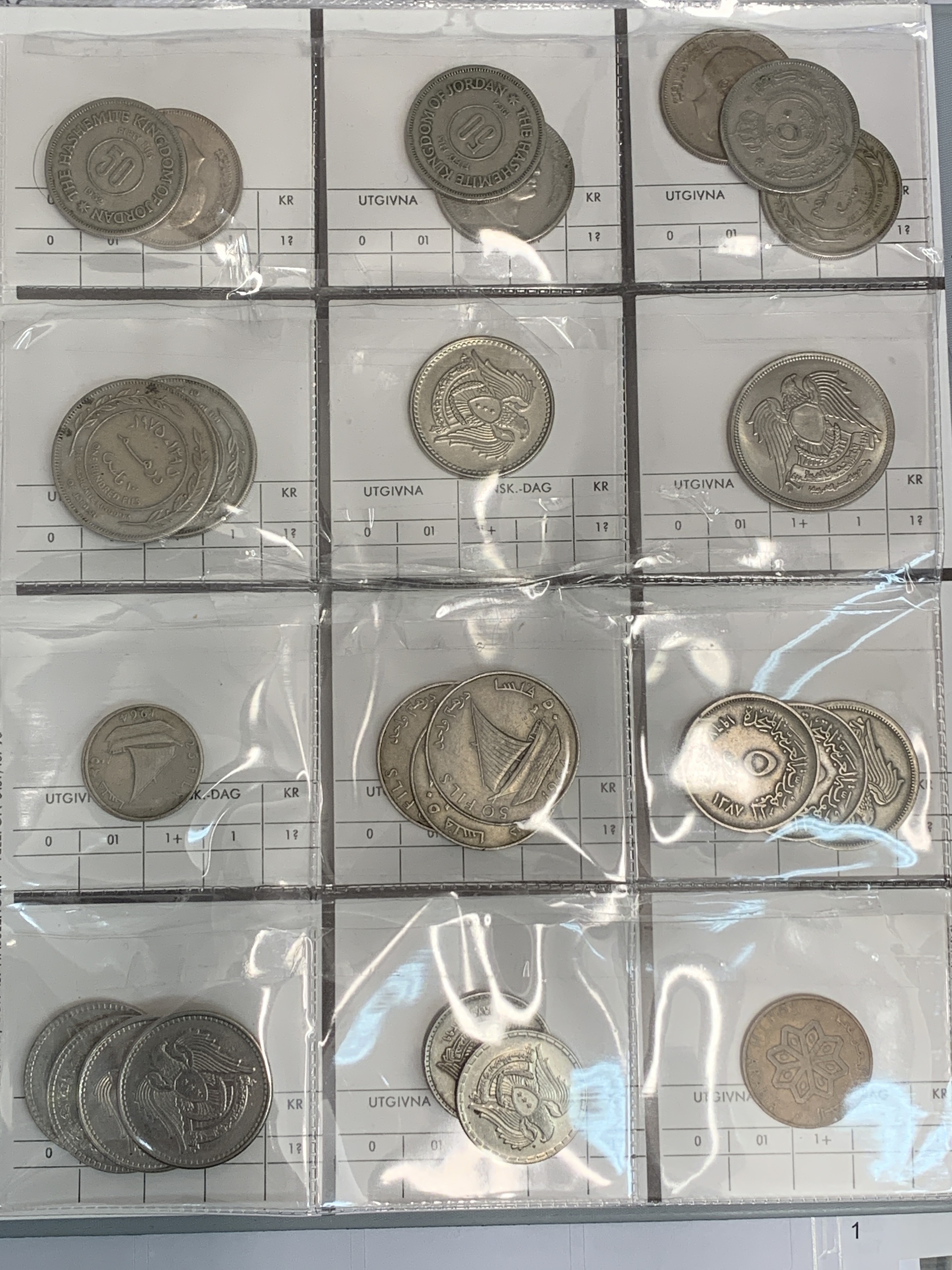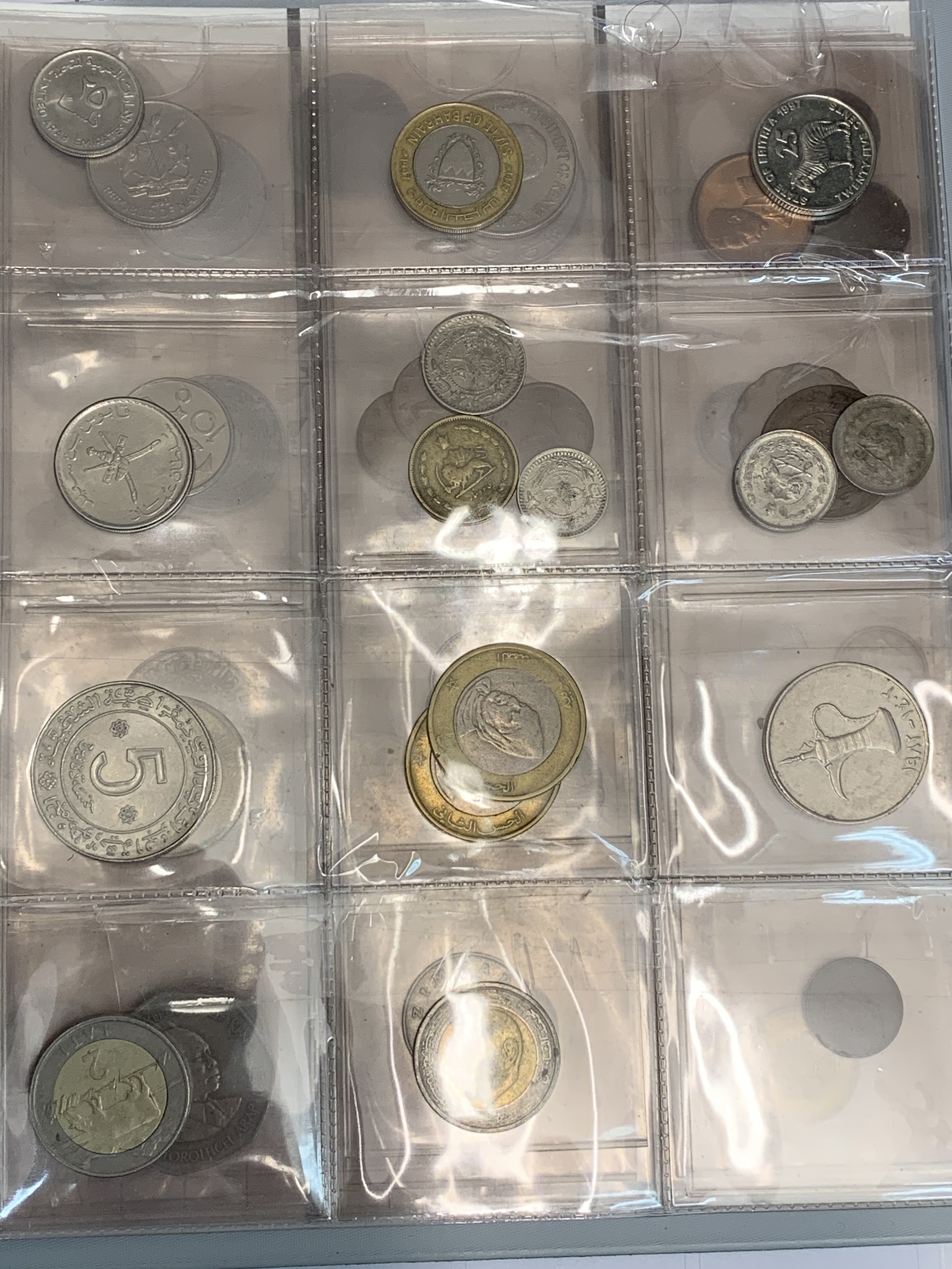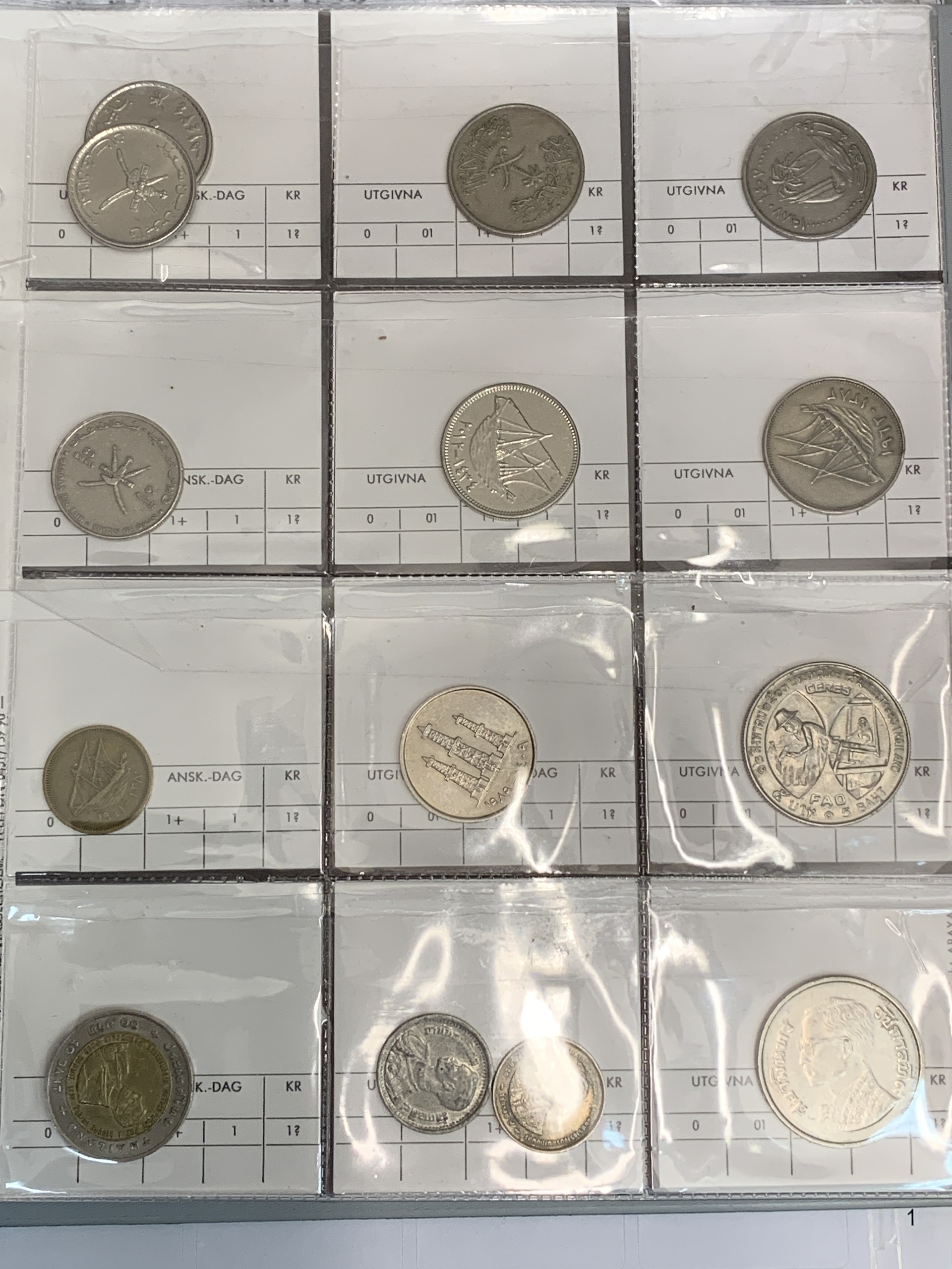 Coins, ALL WORLD. Album with coins from Asia, Africa and Arabic areas. Mixed quality.