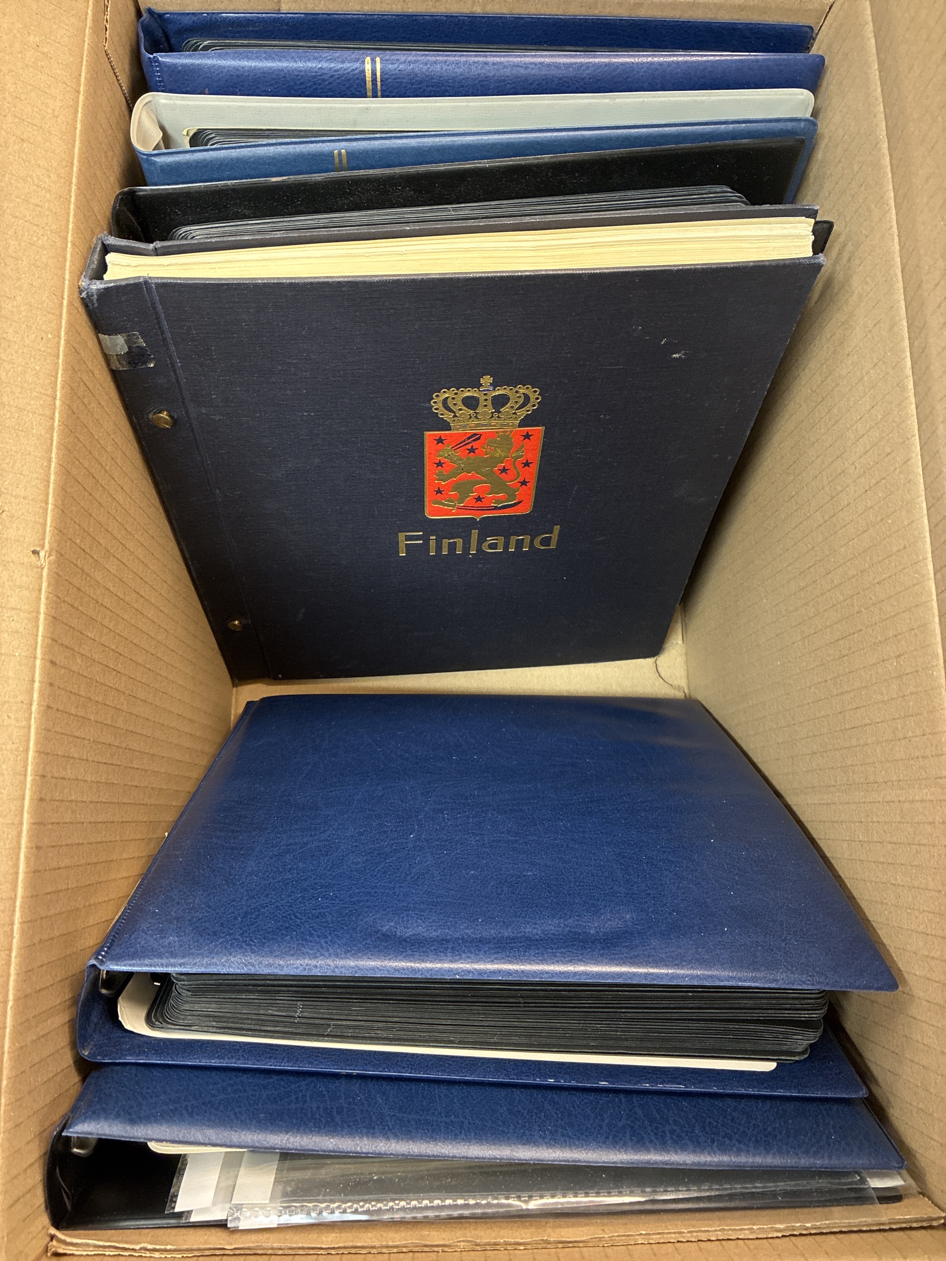Finland. Accumulation ★★/⊙ 1875–1995 in removal box. Six albums with stamps, series, sets, etc. Three of them with mainly, older used material. To some extent back of the book. Low reserve. Mostly fine quality. Approx. 10 kg. (1000S)