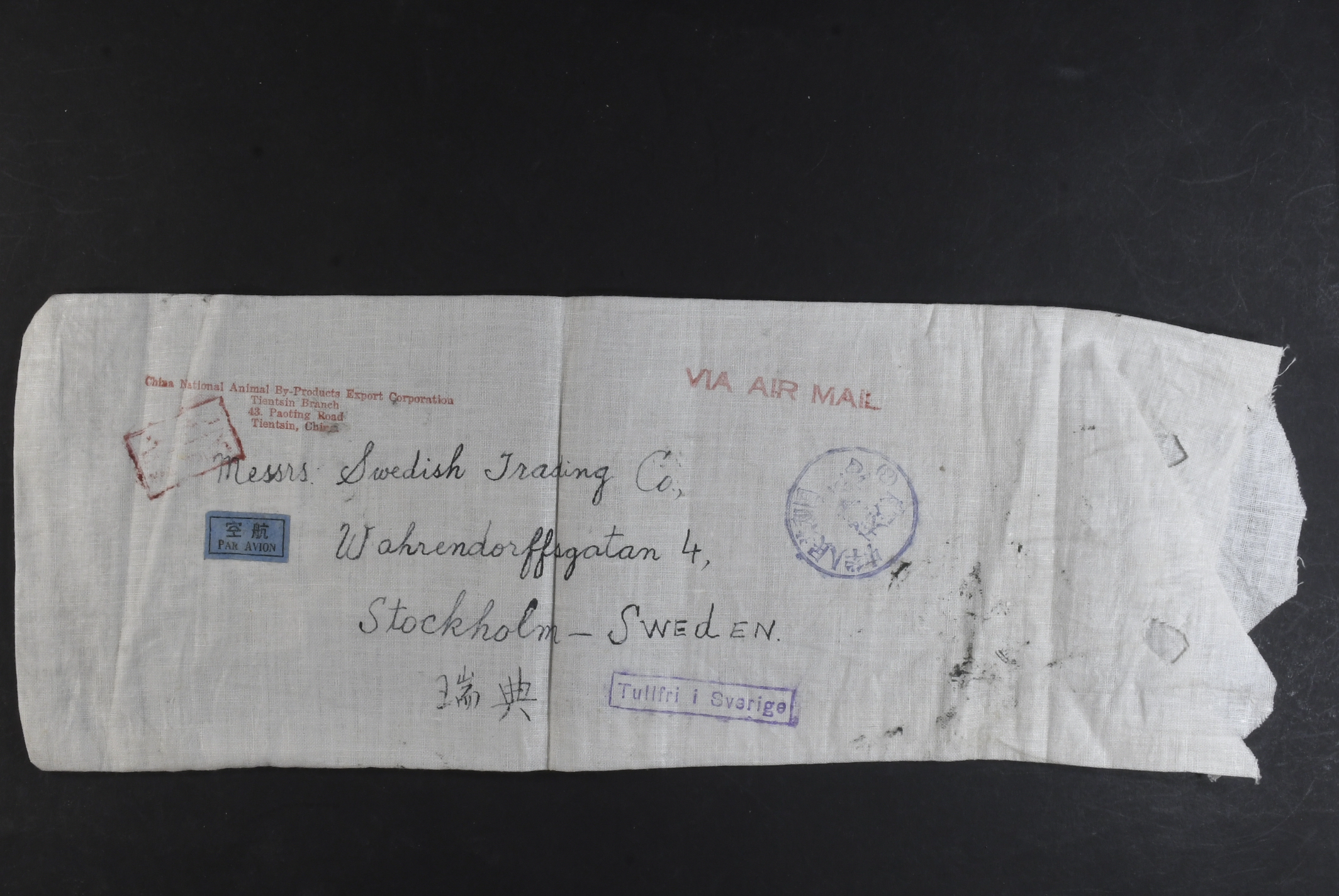 China, People’s Republic. Michel 298, 301, 304 (4), 306–07 on cover, Tien An Men 1Y, 2 Y and other on a small sack sent from Tientsin by airmail to Sweden, few stamps creased.