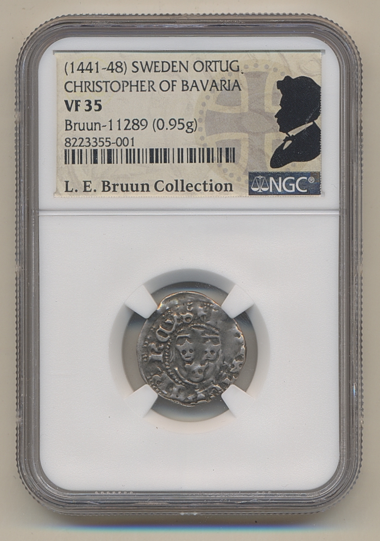 Coins, Sweden. Kristoffer av Bayern, LL 2b, 1 örtug ND. 0.95 g. Stockholm. Ex. Bruun. Graded by NGC as VF35. SMB 326. 1/1+. See certification at NGC