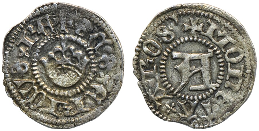 Coins, Sweden. Sten Sture den äldre, LL 16a, 1/2 örtug ND. 0.87 g. Västerås. +SAS ERICVS RE)(+ MONETA AROS'. Somewhat lacquered. SMB 404. 1+.