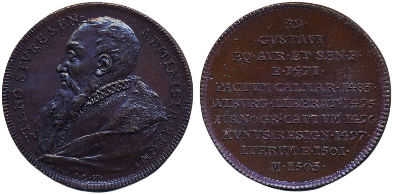 Medals, regal, Sweden. Sten Sture den äldre, Hild. 39, Hedlingers regentlängd (Hedlinger's set of regents). No 39. Bronze medal, 35 mm, 13.40 g. SKM 40c. 01/0.