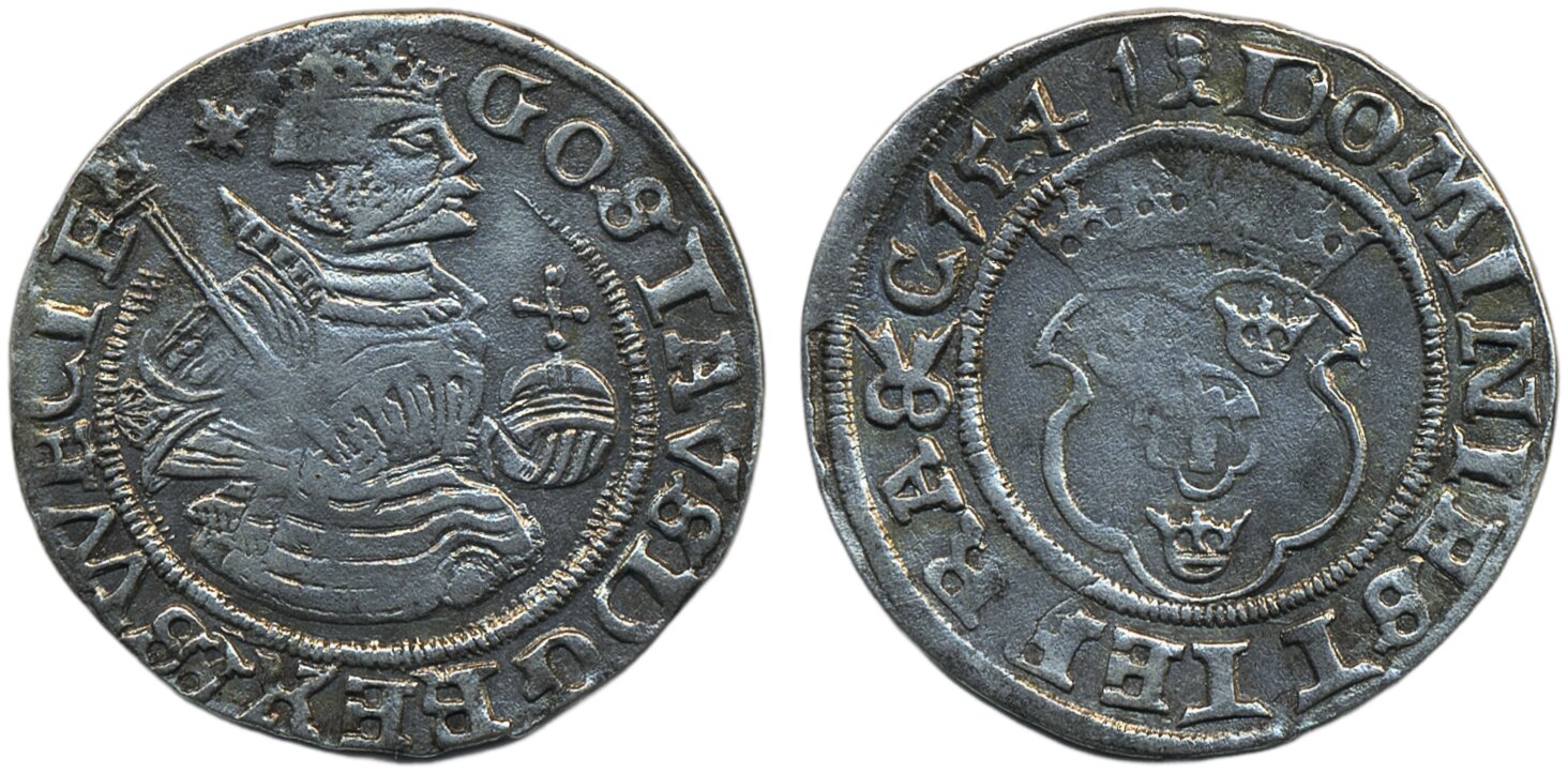 Coins, Sweden. Gustav Vasa, SM 195, 1/2 mark 1541. 5.66 g. Svartsjö. Lightly corroded, cleaned. 1+.