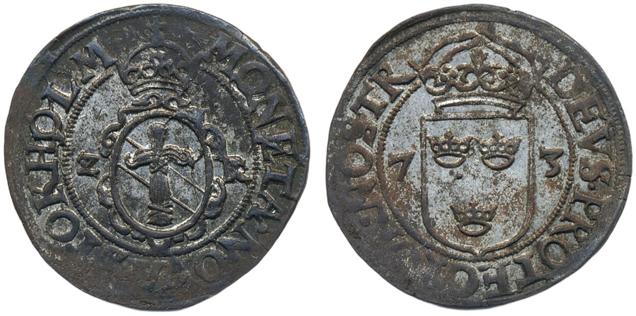 Coins, Sweden. Johan III, SM 75b, 2 öre 1573. 2.93 g. Stockholm. Some silver lustre. 01.