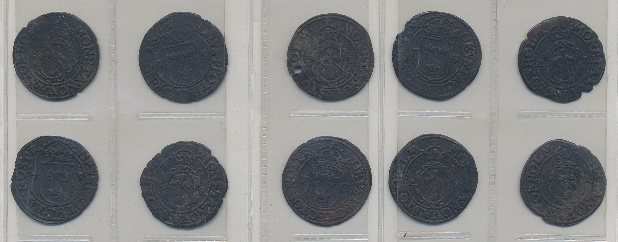 Coins, Sweden. Johan III, SM 75b, 2 öre 1573. Lot with 10 examples in mixed condition. Please inspect! 1?-1+.