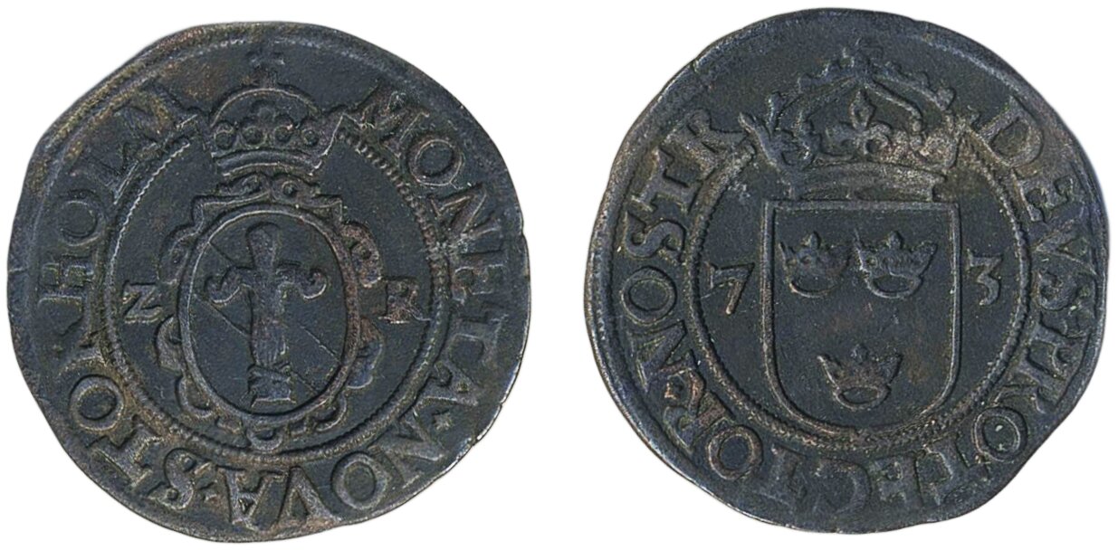 Coins, Sweden. Johan III, SM 75b, 2 öre 1573. 3.34 g. Stockholm. Lev. 356. 1+.