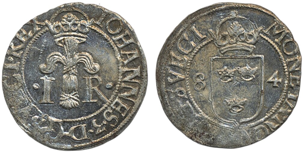 Coins, Sweden. Johan III, SM 107, 1/2 öre 1584. 1.68 g. Stockholm. Beautiful lustrous example. 01.