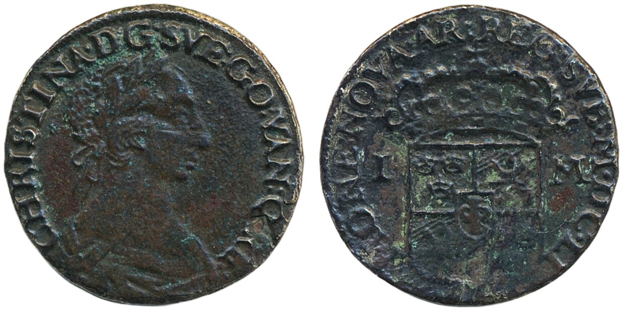 Coins, Sweden. Kristina, SM 81, 1 mark 1651. 4.16 g. Stockholm. 1?/1.