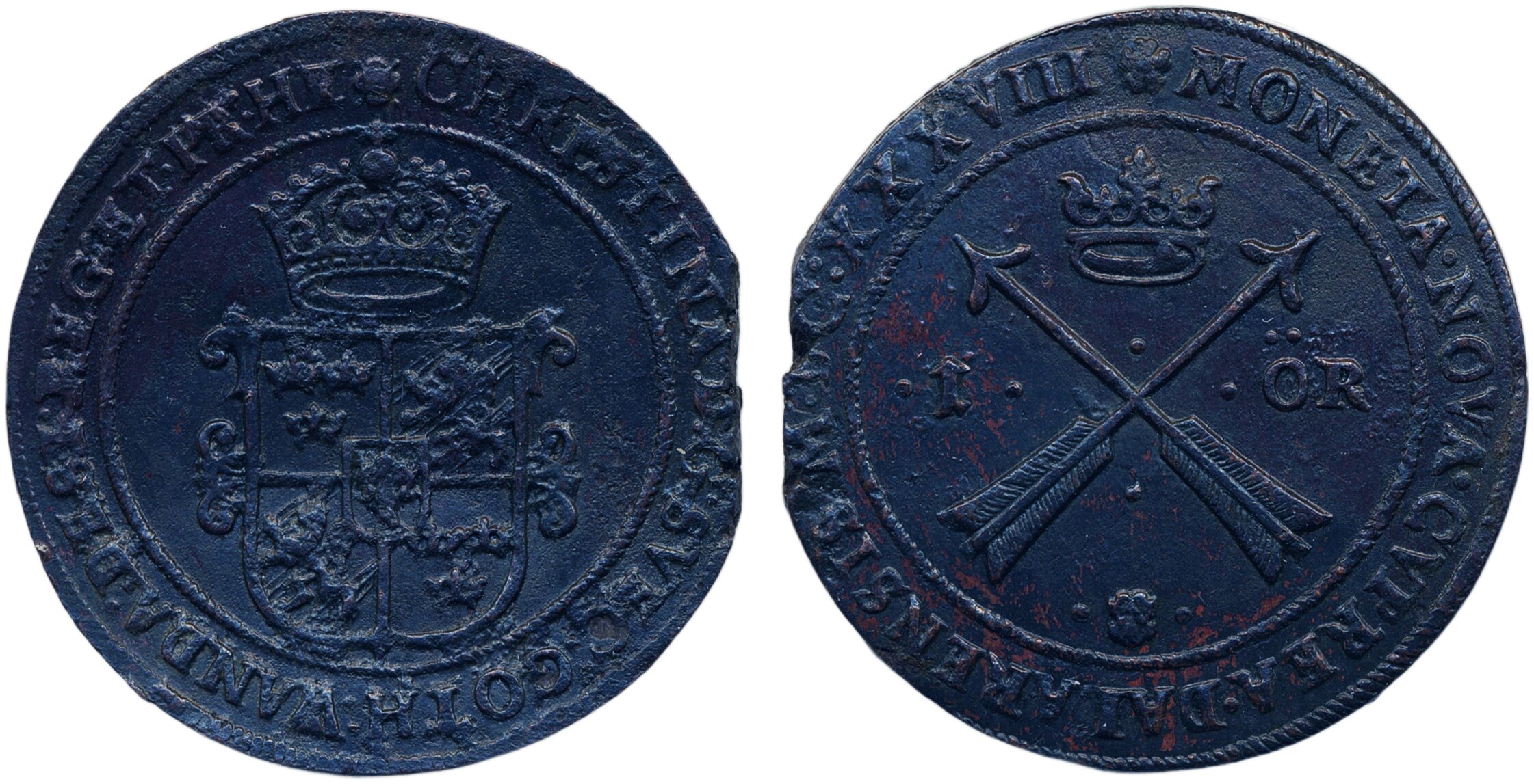 Coins, Sweden. Kristina, SM 114, 1 öre 1638. 46.89 g. Säter. Well struck example. 01.