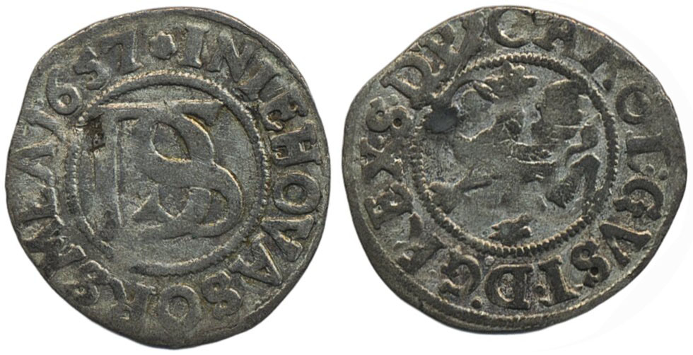 Coins, Swedish possessions, Pomerania. Karl X Gustav, SB 40, 1/24 taler 1657. 0.92 g. Stettin. Somewhat weakly struck. SMB 120. 1+.