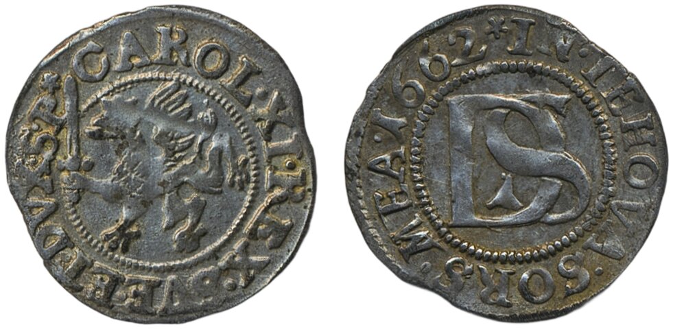 Coins, Swedish possessions, Pomerania. Karl XI, SB 161, 1/24 taler 1662. 1.30 g. Stettin. Somewhat irregular planchet. 1+/01.
