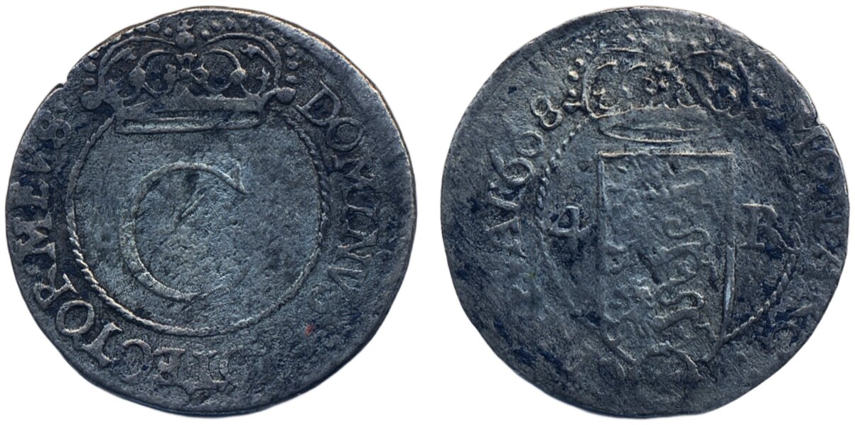 Coins, Swedish possessions, Reval. Karl XI, SB 102a, 4 öre 1668. 2.73 g. Some corrosion. SMB 986. 1/1+.