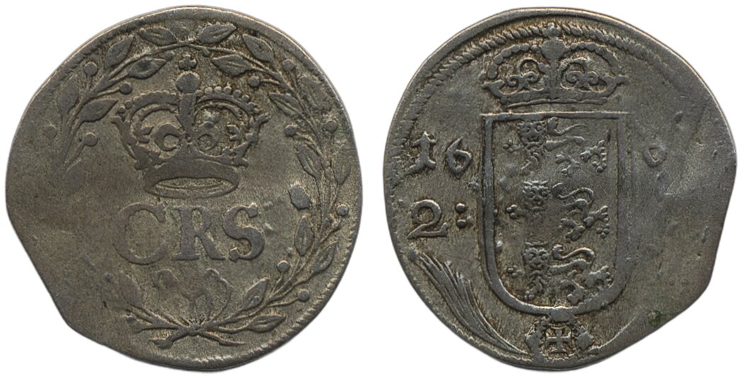 Coins, Swedish possessions, Reval. Karl XI, SB 115, 2 öre 1667. 1.80 g. Partly weakly struck at date. SMB 1004. 1/1+.