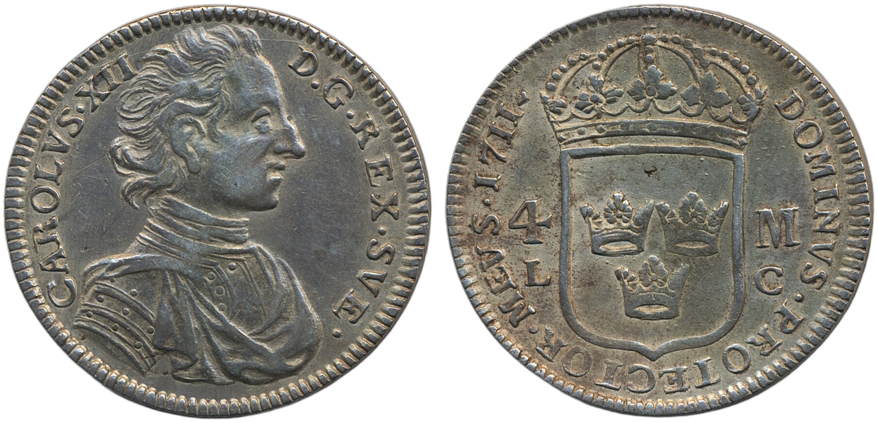 Coins, Sweden. Karl XII, SM 51, 4 mark 1711. 20.95 g. Stockholm. Insignificant scratches. R. 1+.