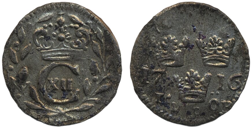 Coins, Sweden. Karl XII, SM 140, 1 öre 1716. 0.88 g. Stockholm. 1+.