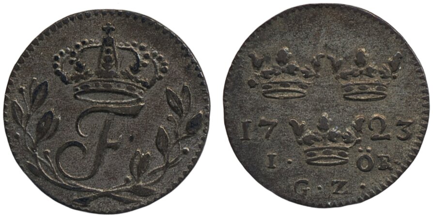 Coins, Sweden. Fredrik I, SM 160a, 1 öre 1723. 1.26 g. Stockholm. 1+.