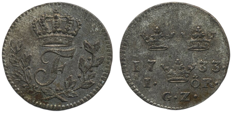 Coins, Sweden. Fredrik I, SM 170, 1 öre 1733. 1.20 g. Stockholm. 1+.