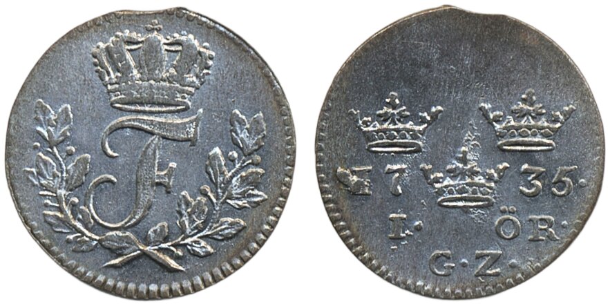 Coins, Sweden. Fredrik I, SM 172, 1 öre 1735. 1.17 g. Stockholm. 01.