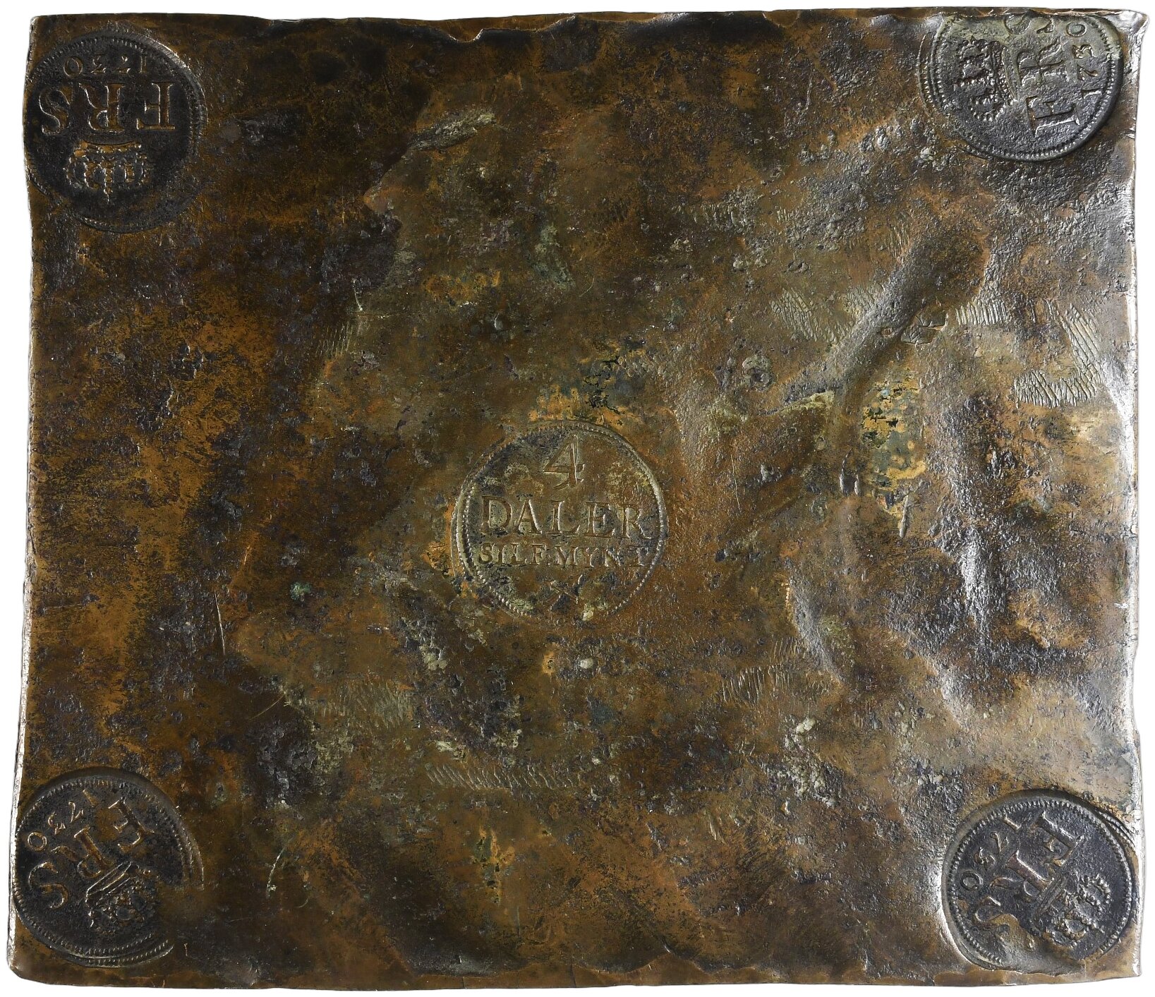Coins, Sweden. Fredrik I, SM 198, 4 daler SM (plate money) 1730. 3017 g. Avesta. Two edges are damaged (filed). 1+.