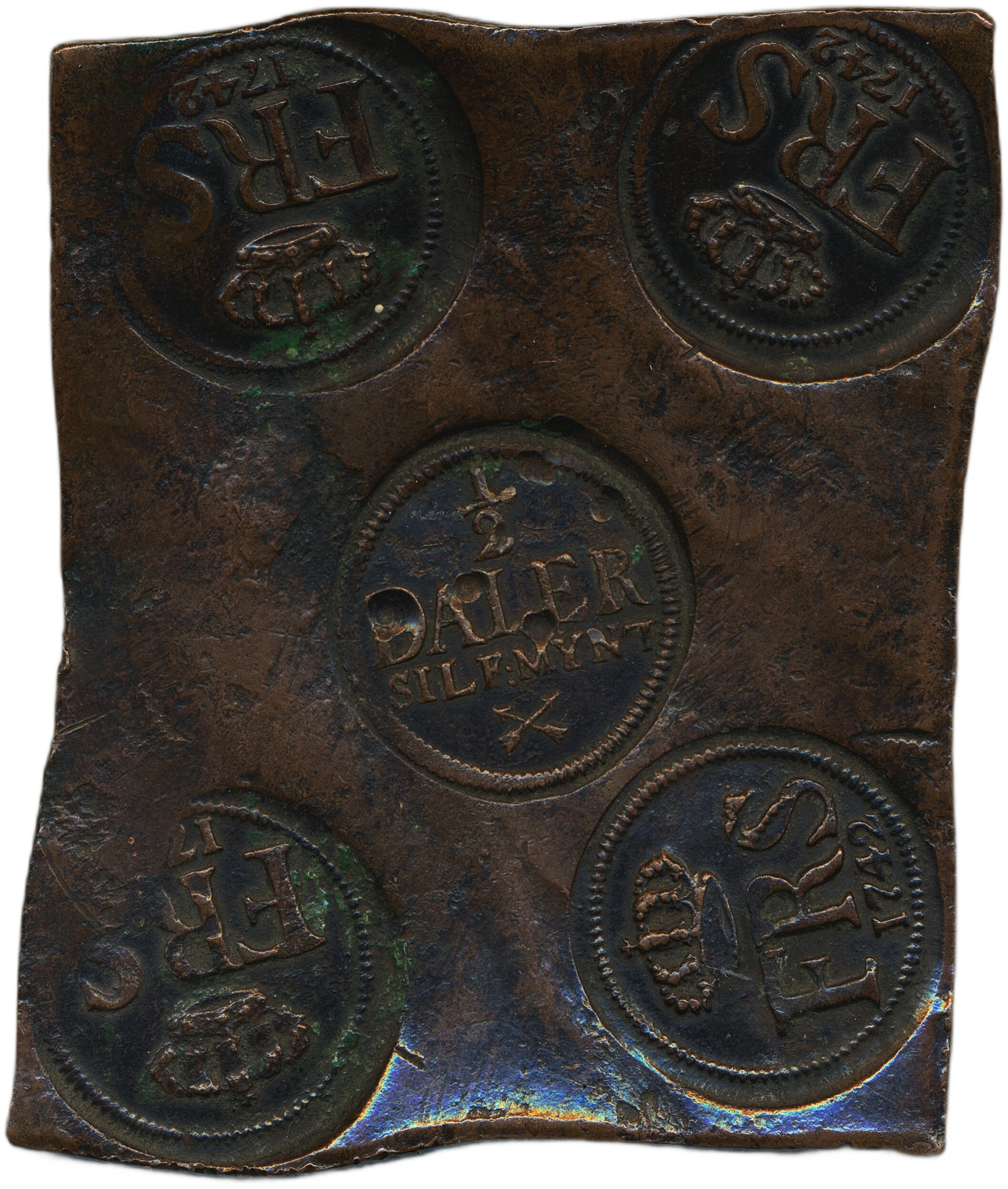 Coins, Sweden. Fredrik I, SM 299, 1/2 daler SM (plate money) 1742. 315 g. Avesta. 1/1+.