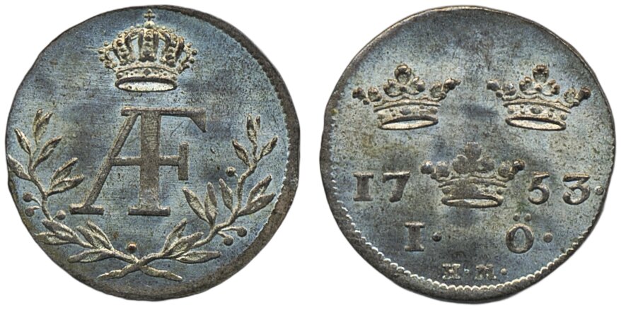 Coins, Sweden. Adolf Fredrik, SM 114, 1 öre 1753. 1.20 g. Stockholm. 01/0.