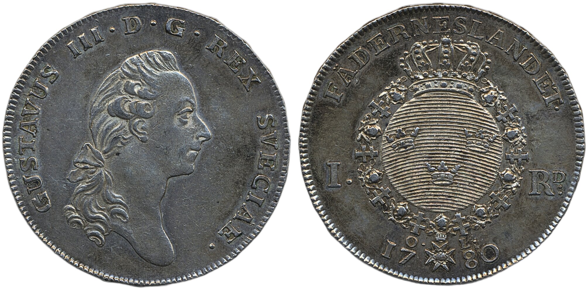Coins, Sweden. Gustav III, SM 46, 1 riksdaler 1780. 29.31 g. Stockholm. 1+/01.