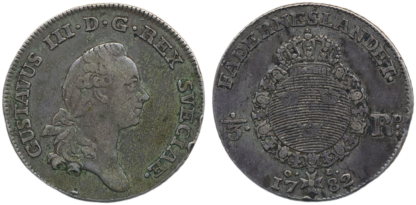 Coins, Sweden. Gustav III, SM 66, 1/3 riksdaler 1782. 9.64 g. Stockholm. 1.