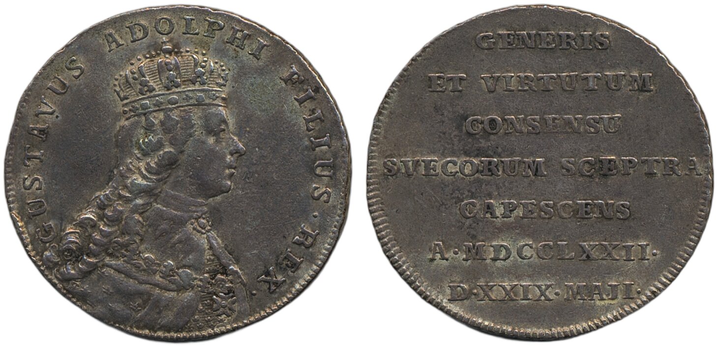 Coins, Sweden. Gustav III, SM 97a, 1/3 riksdaler 1772. 9.58 g. Stockholm. Largesse money for King's Coronation. 1+.